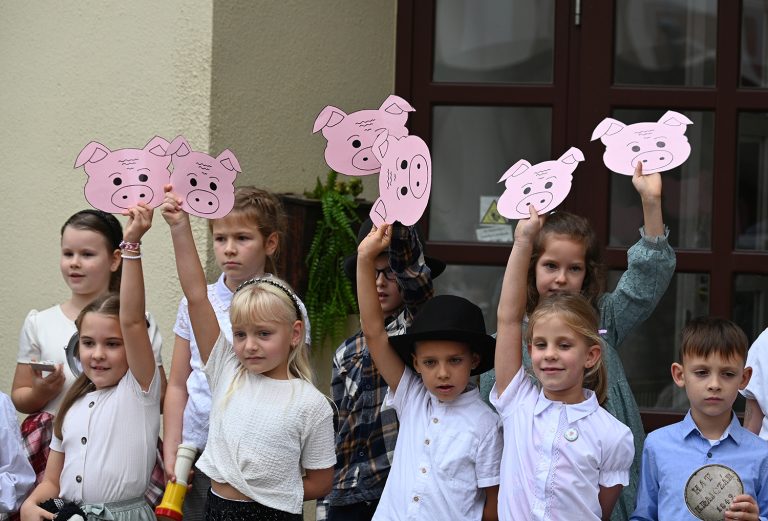 Megteltek a vásári kosarak Mihály napján. A 2.b osztály verses, dalos műsora után mindenki kedvére váltogathatott a szülők és diákok...