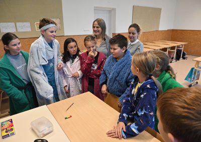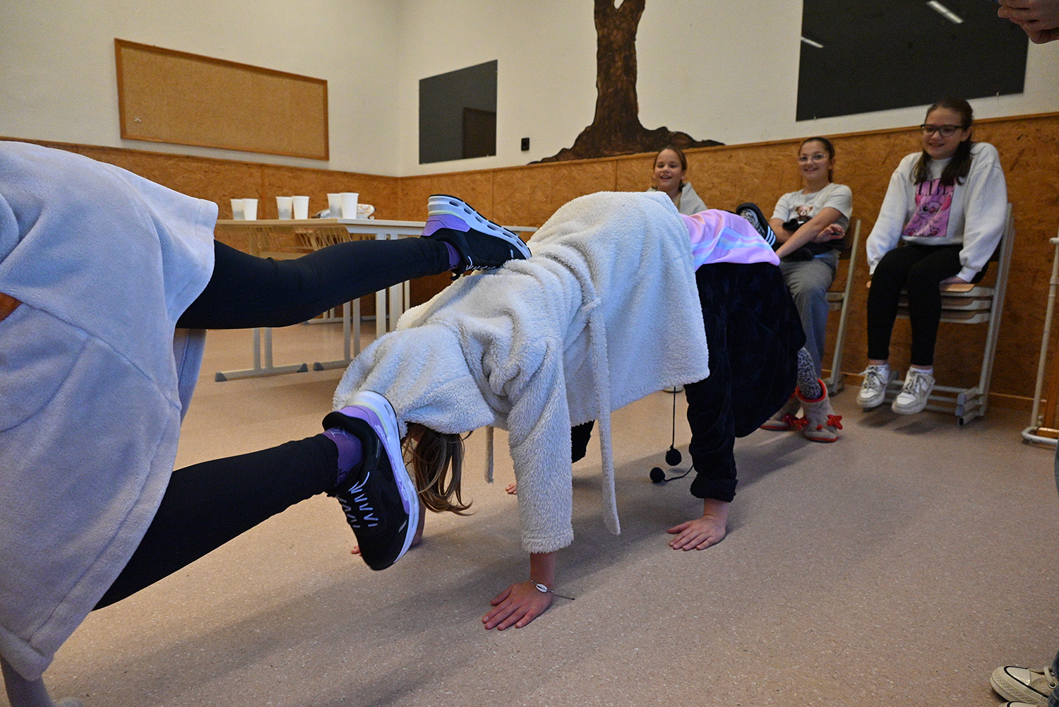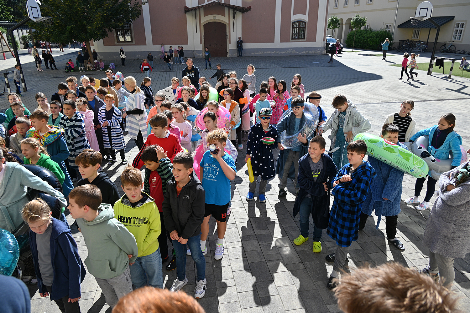 Idén is nagy szeretettel, de főleg tréfás, kreatív feladatokkal köszöntötték a „Nagyok” az 5. és 9. évfolyamba frissen érkezett „Gólyákat”. A 9. osztályosok az órák közti szünetekben és a nap végén teljesítették a kiszabott feladatokat, míg a kisebbeknek a délután során kellett bizonyítaniuk, hogy helyük van a felsőben. Ők csapatokban versenyeztek. Így a következő sorrend alakult ki:
