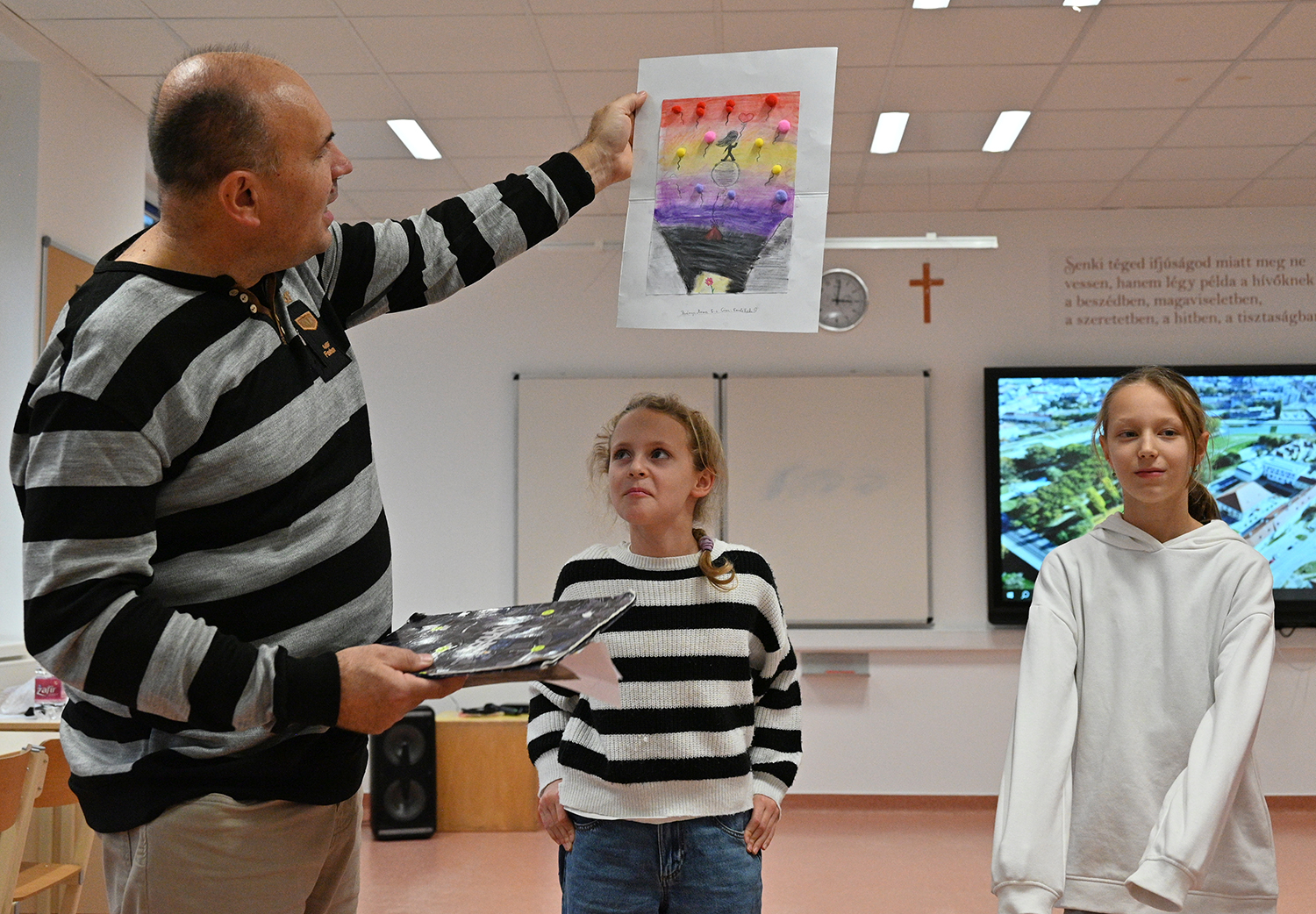 Ki mit tud? Igen, hagyományteremtő céllal első alkalommal rendezte meg a diákönkormányzat ezt a vetélkedőt felső tagozatos diákok számára. Láthattunk táncokat egyéniben, párosban és csoportban is, hallhattunk dalokat, de kaptunk ízelítőt labdazsonglőrködésből, egy csehszlovák népdalhoz is volt szerencsénk és gyönyörű rajzokat is megcsodálhattunk. A zsűrinek – nem is kell mondani – nehéz dolga volt, de végül kialakult a díjazottak sora. Ők jutalmul értékes könyvutalványokkal térhettek haza.