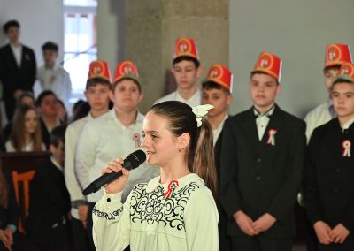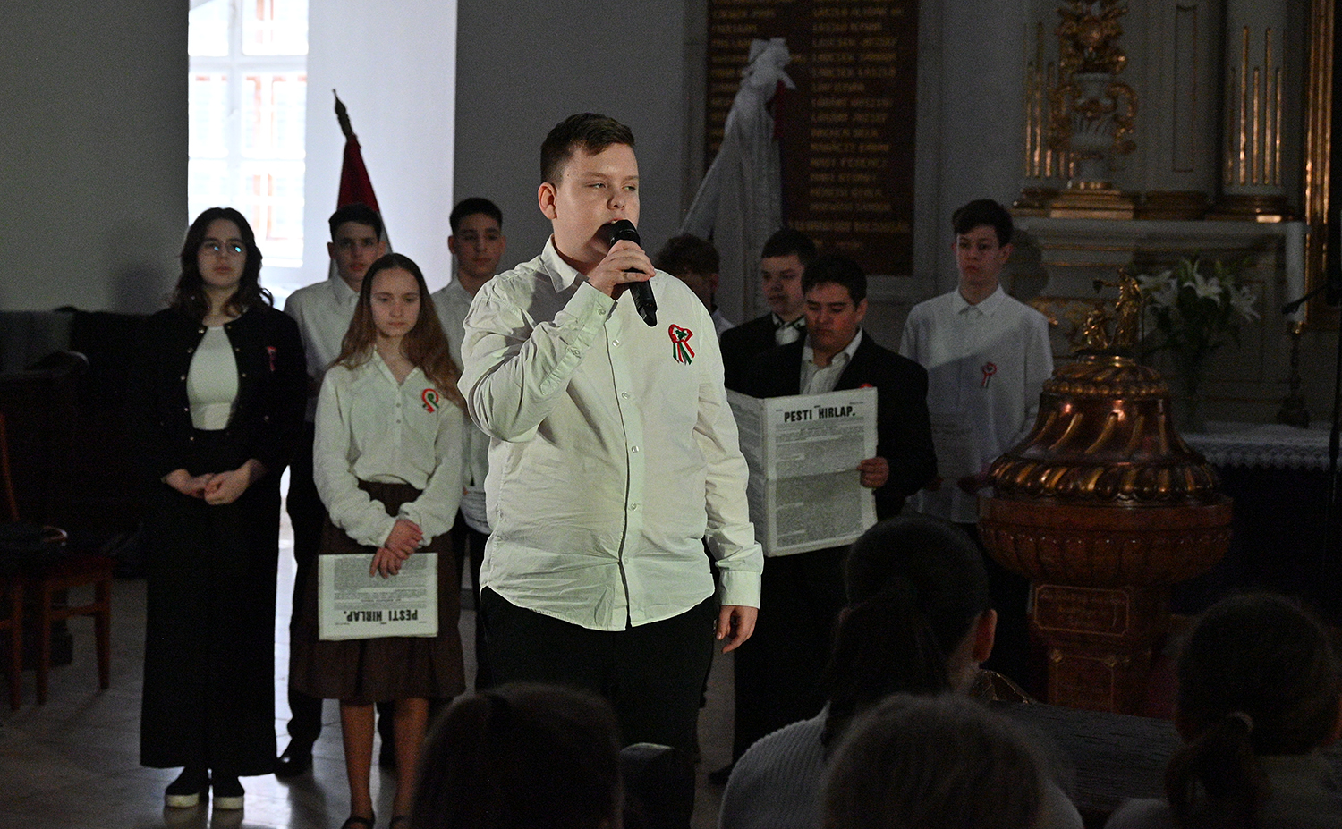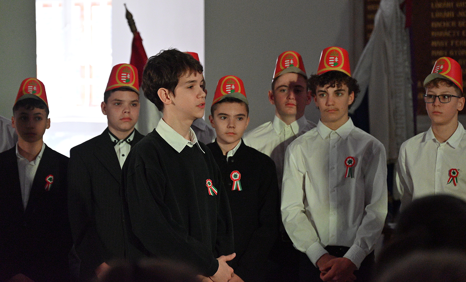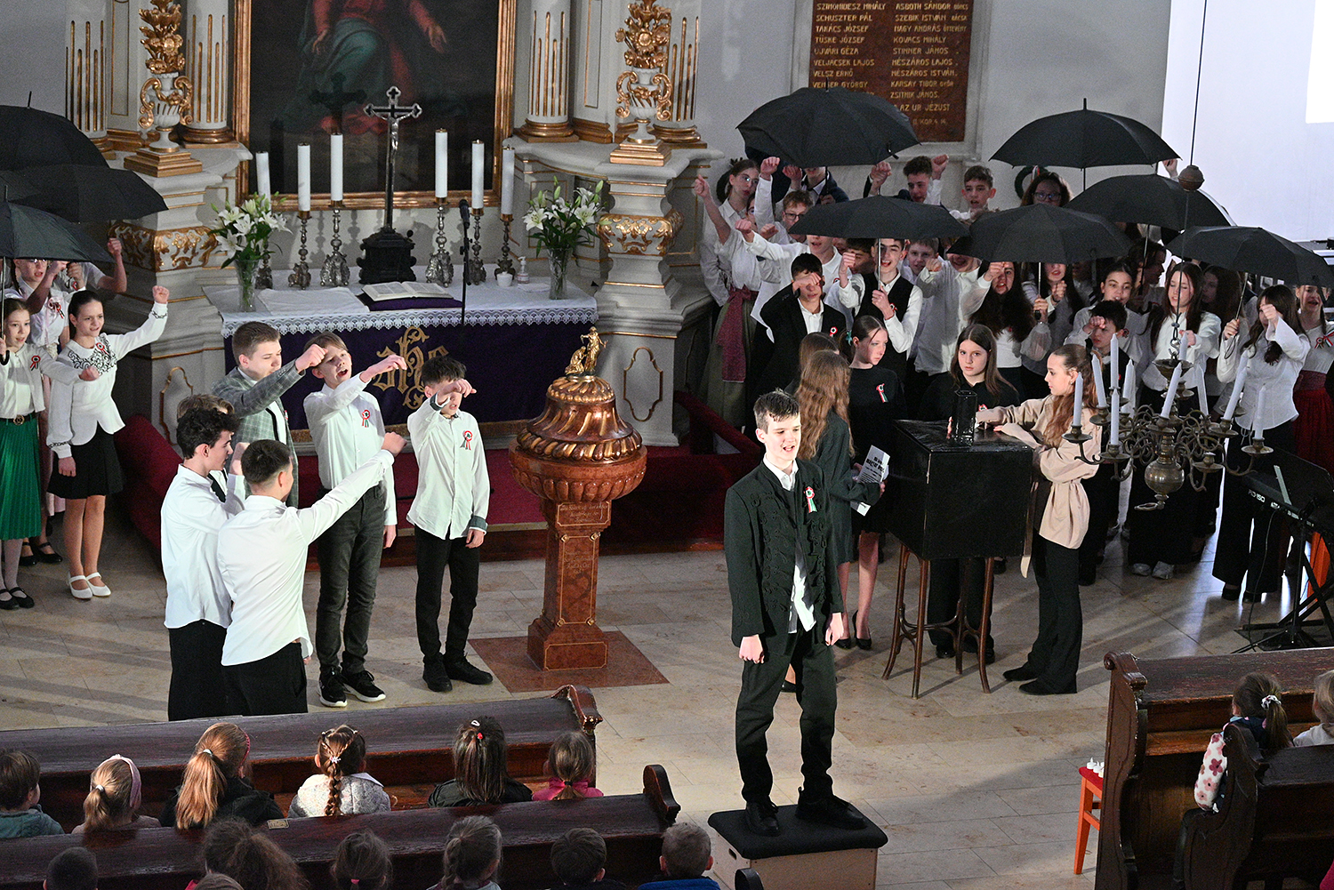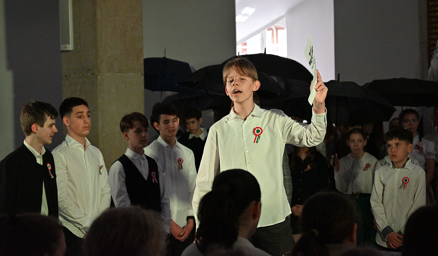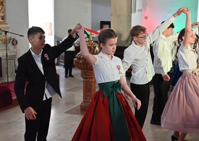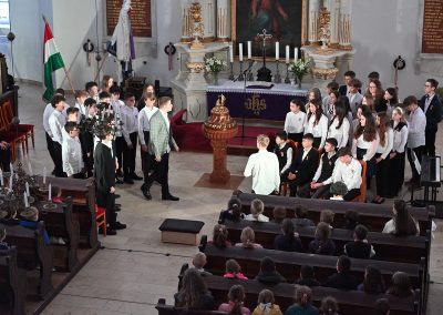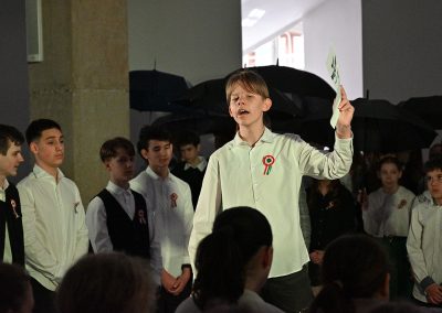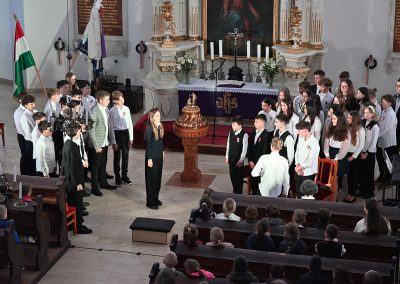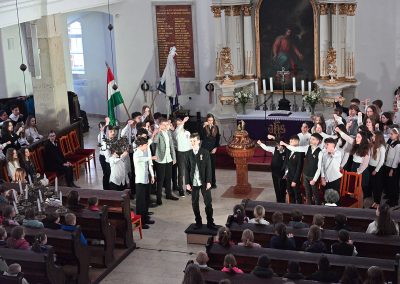 Hagyományosan a 7. évfolyam közös műsorával elevenedtek meg az 1848. március 15-i események. Mai keretbe ágyazva, de méltó módon tárultak elénk az akkori történések versek, dalok és jelenetek formájában.