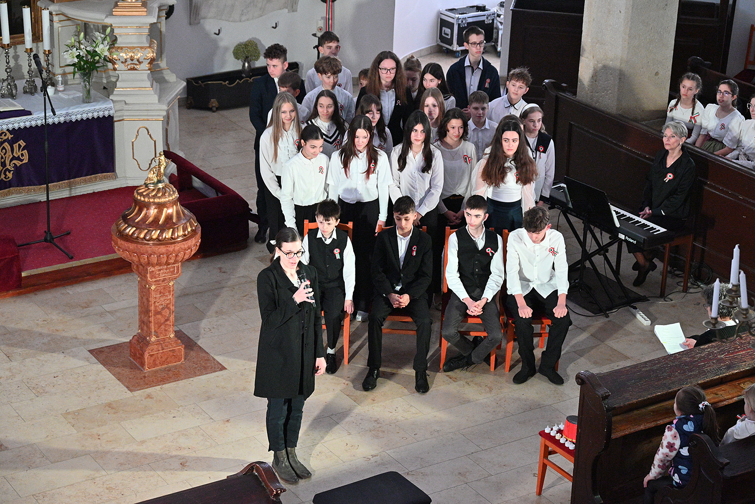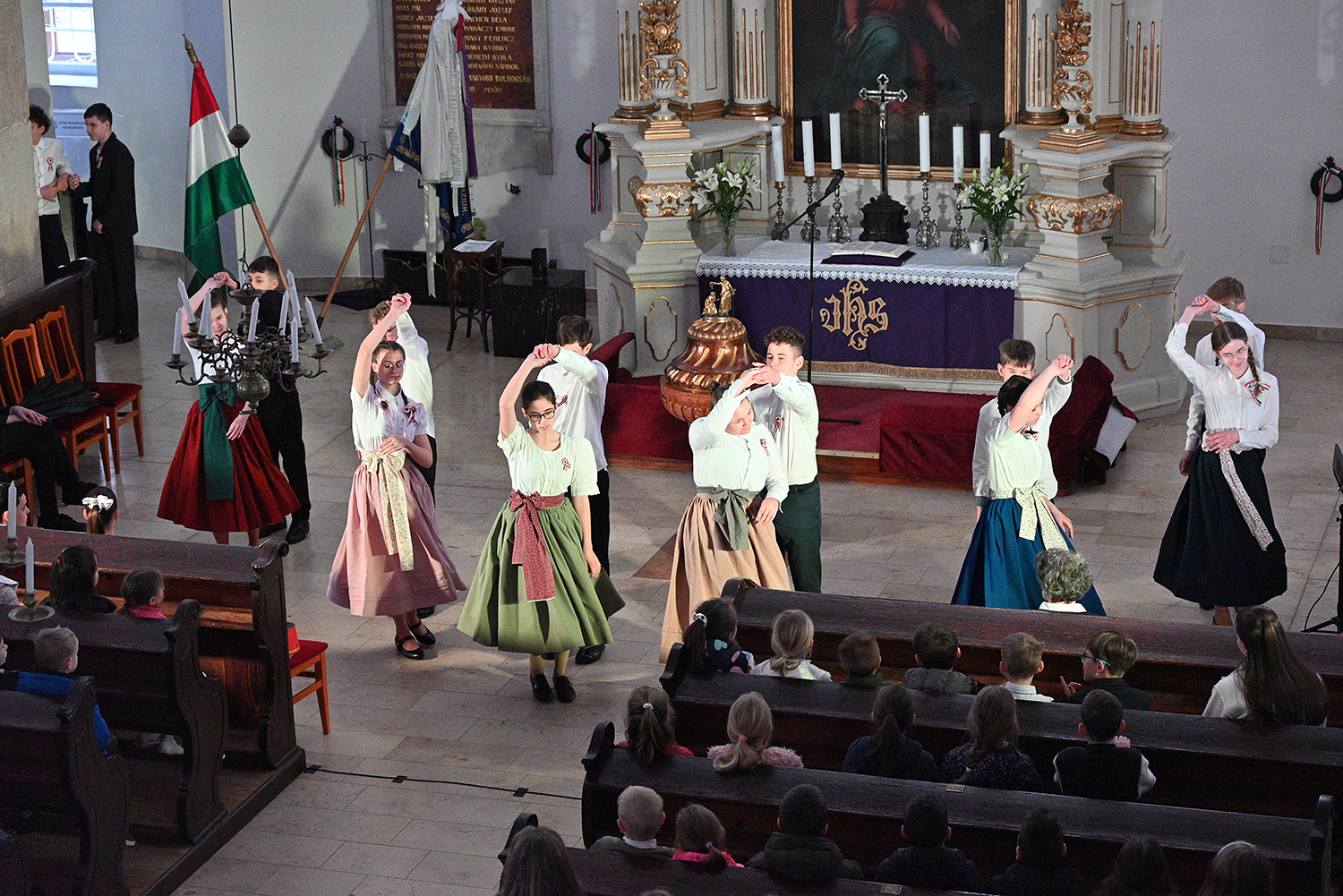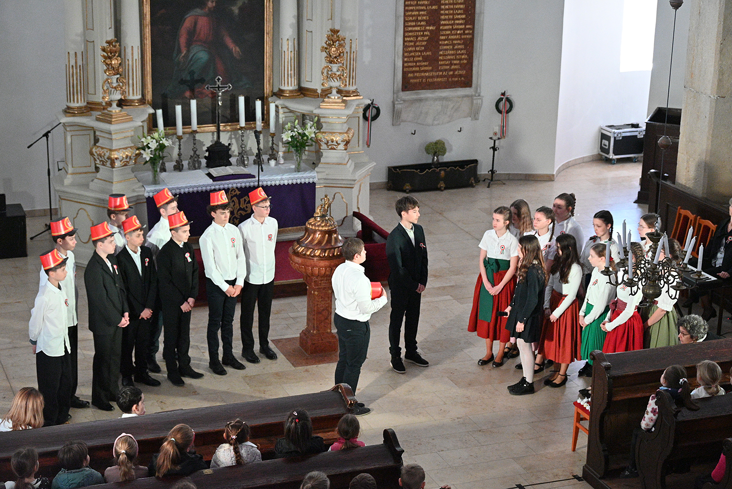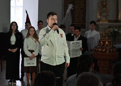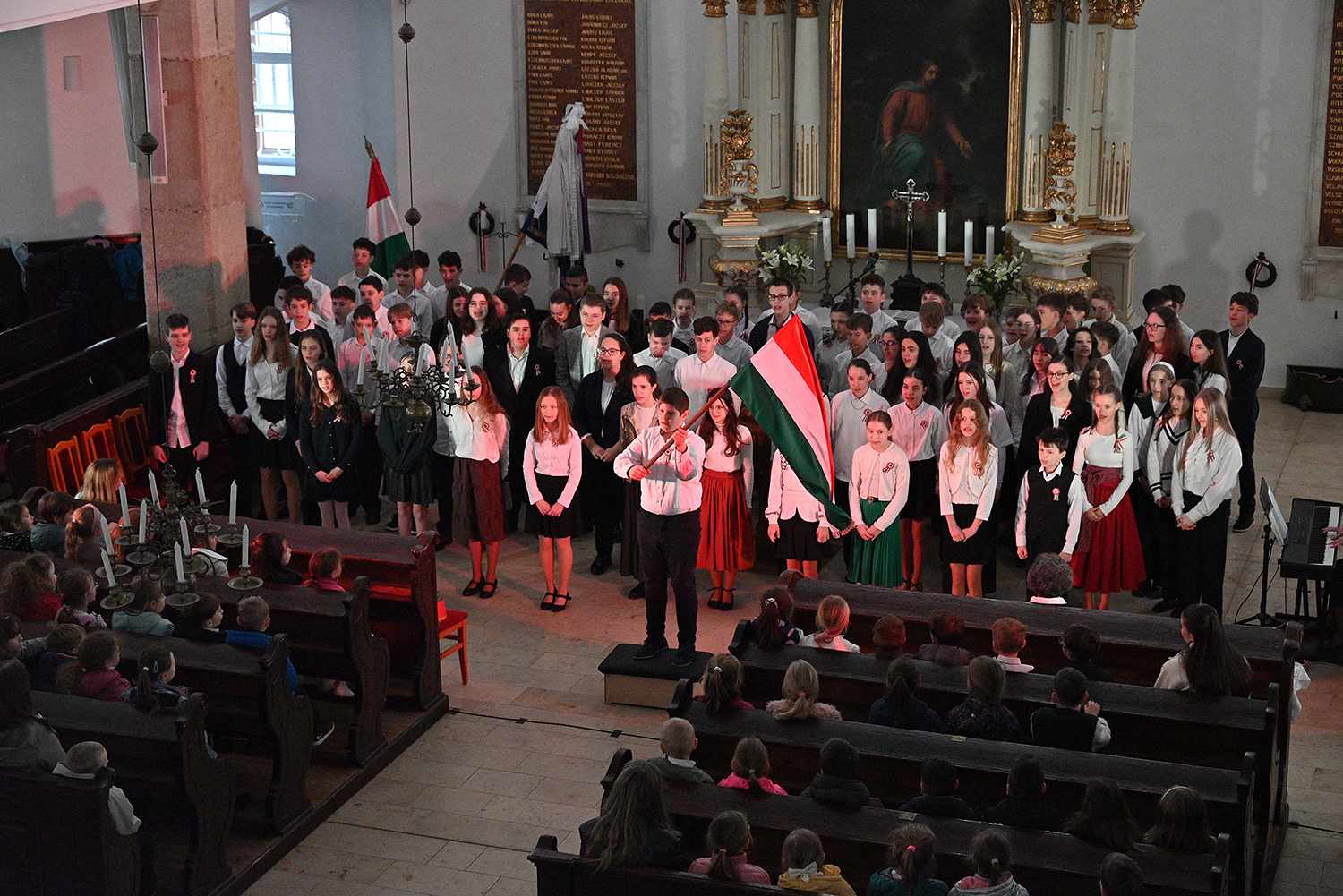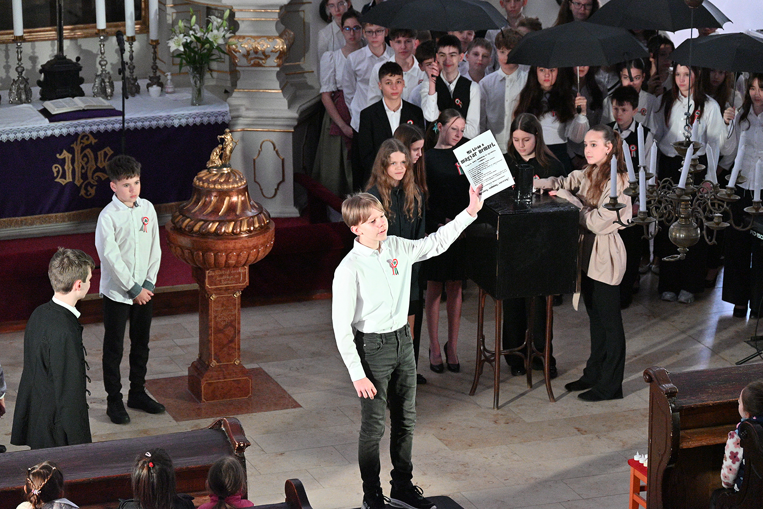 Hagyományosan a 7. évfolyam közös műsorával elevenedtek meg az 1848. március 15-i események. Mai keretbe ágyazva, de méltó módon tárultak elénk az akkori történések versek, dalok és jelenetek formájában.