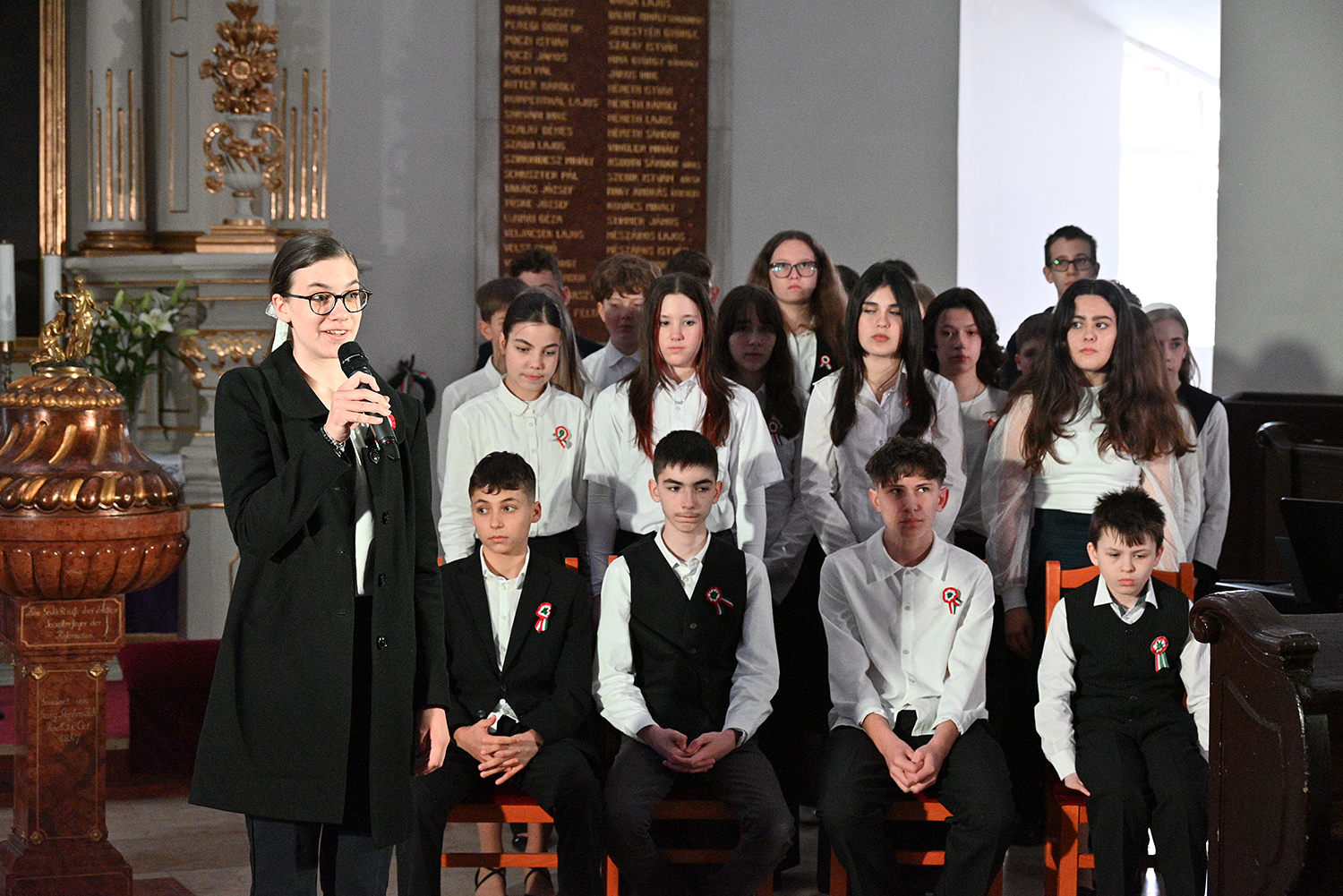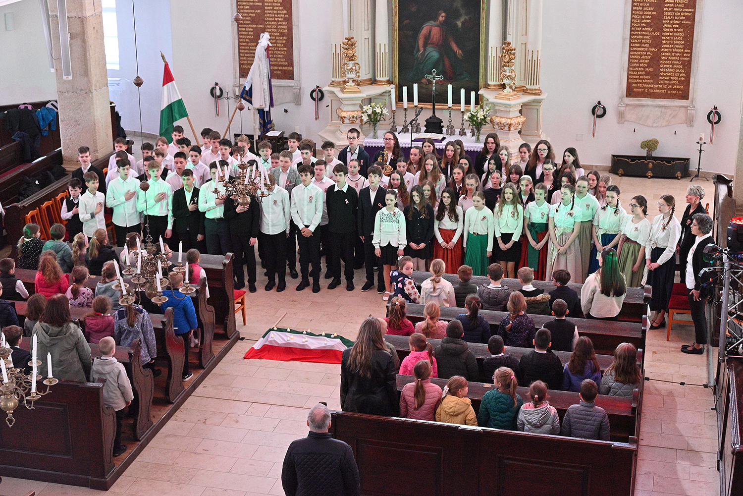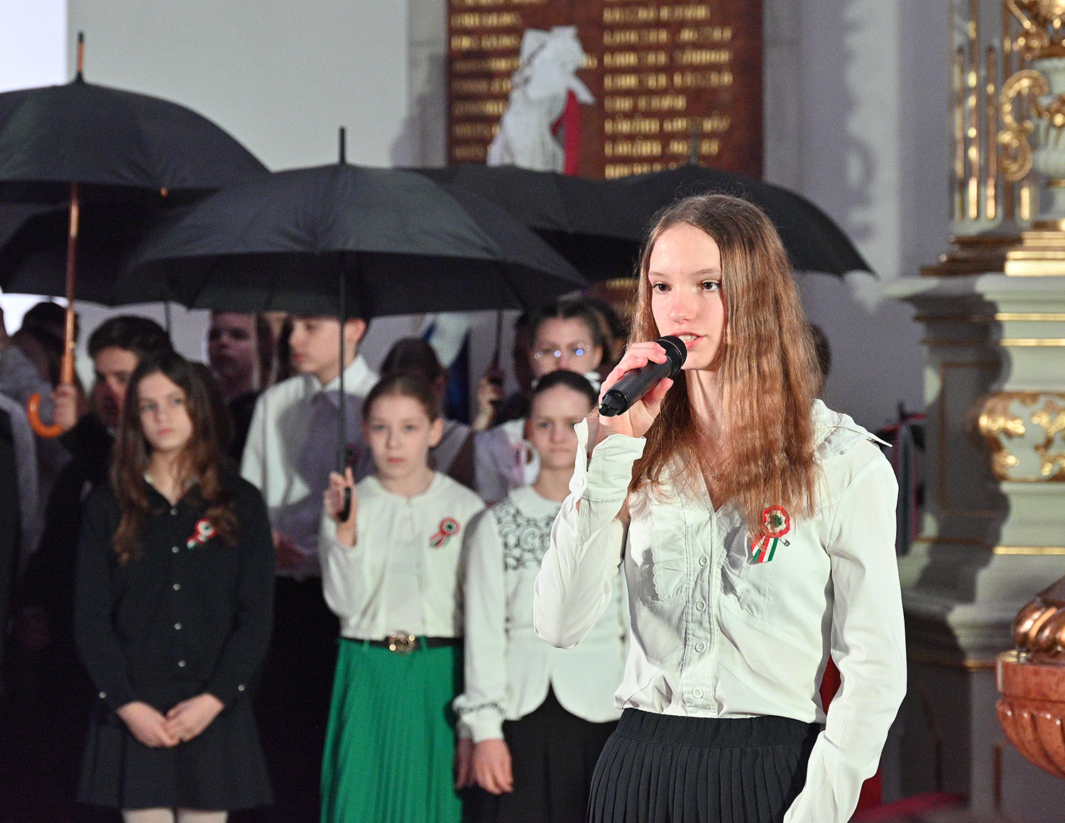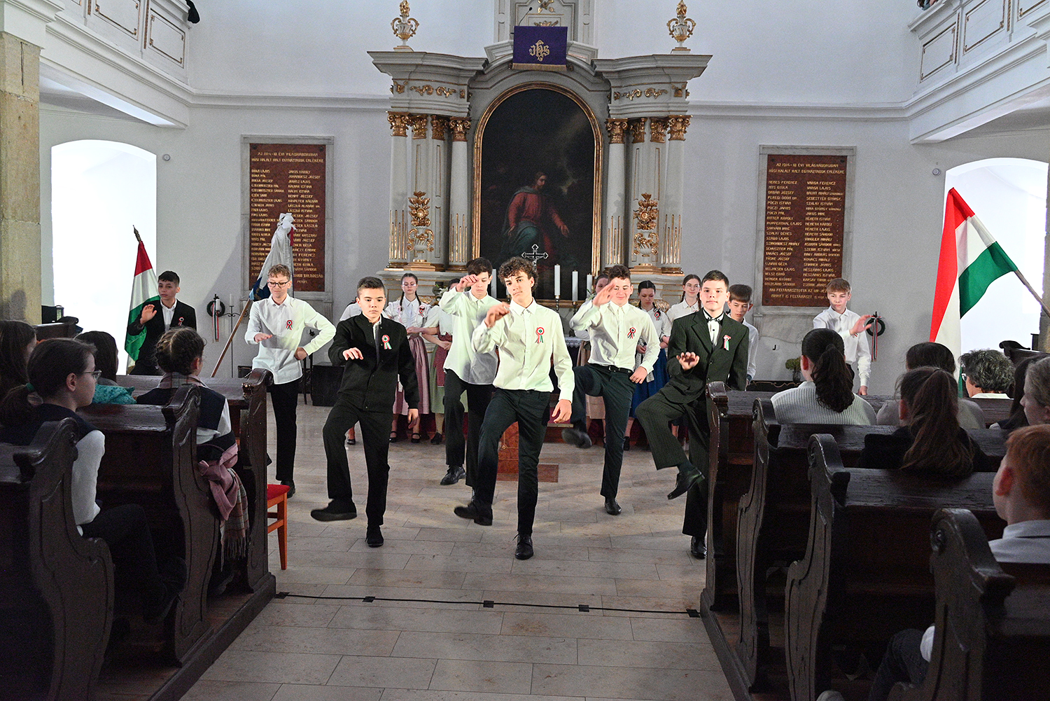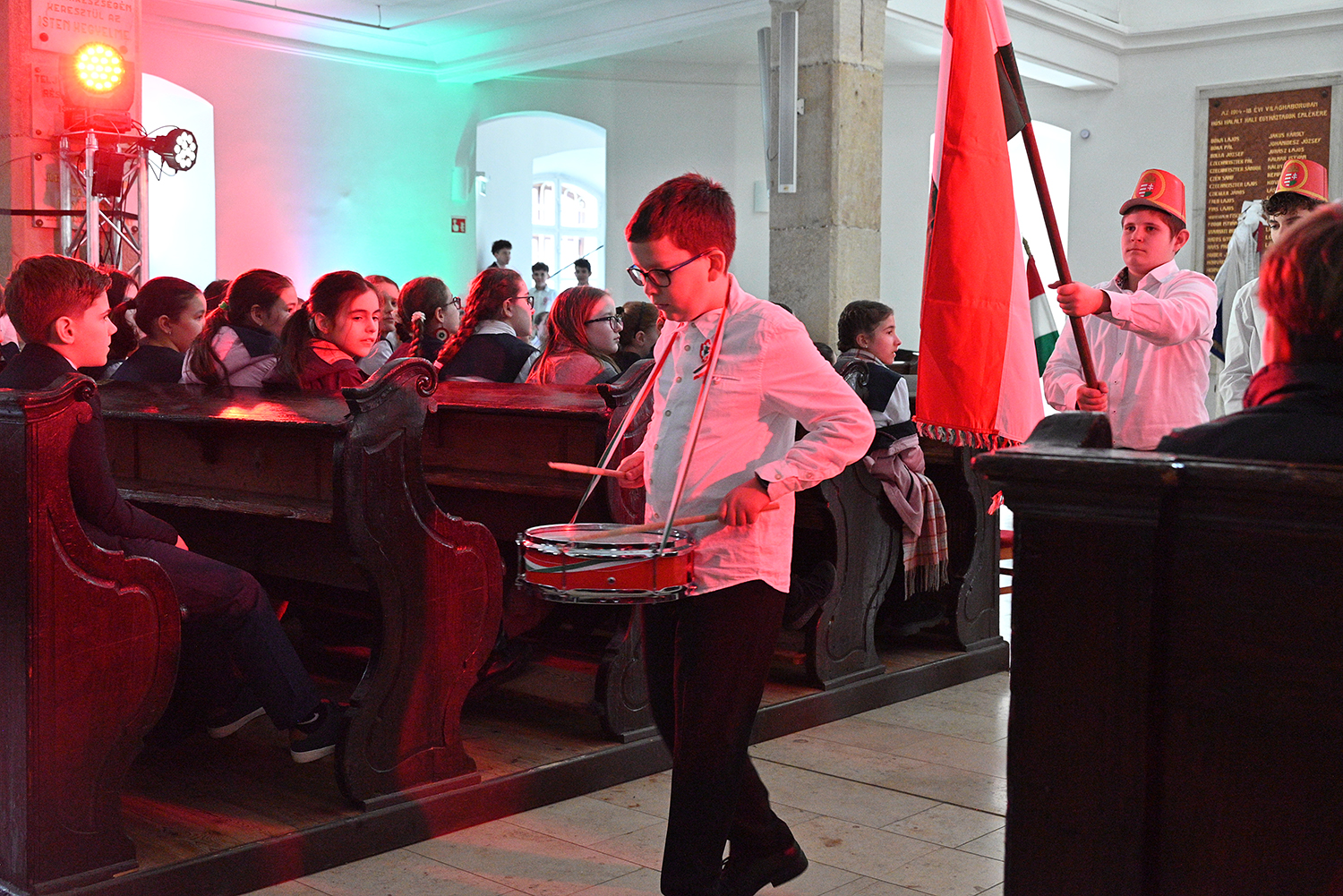 Hagyományosan a 7. évfolyam közös műsorával elevenedtek meg az 1848. március 15-i események. Mai keretbe ágyazva, de méltó módon tárultak elénk az akkori történések versek, dalok és jelenetek formájában.