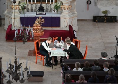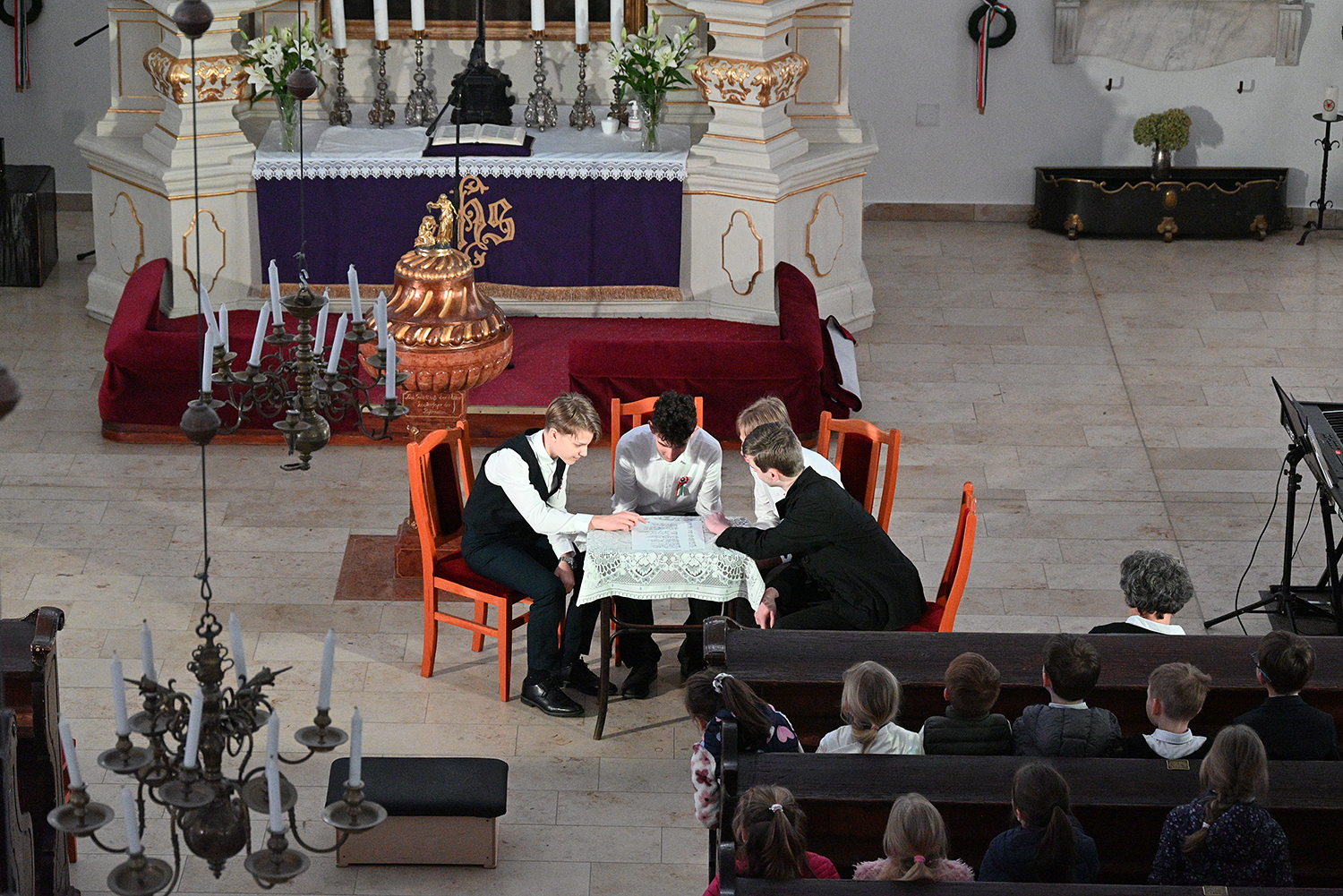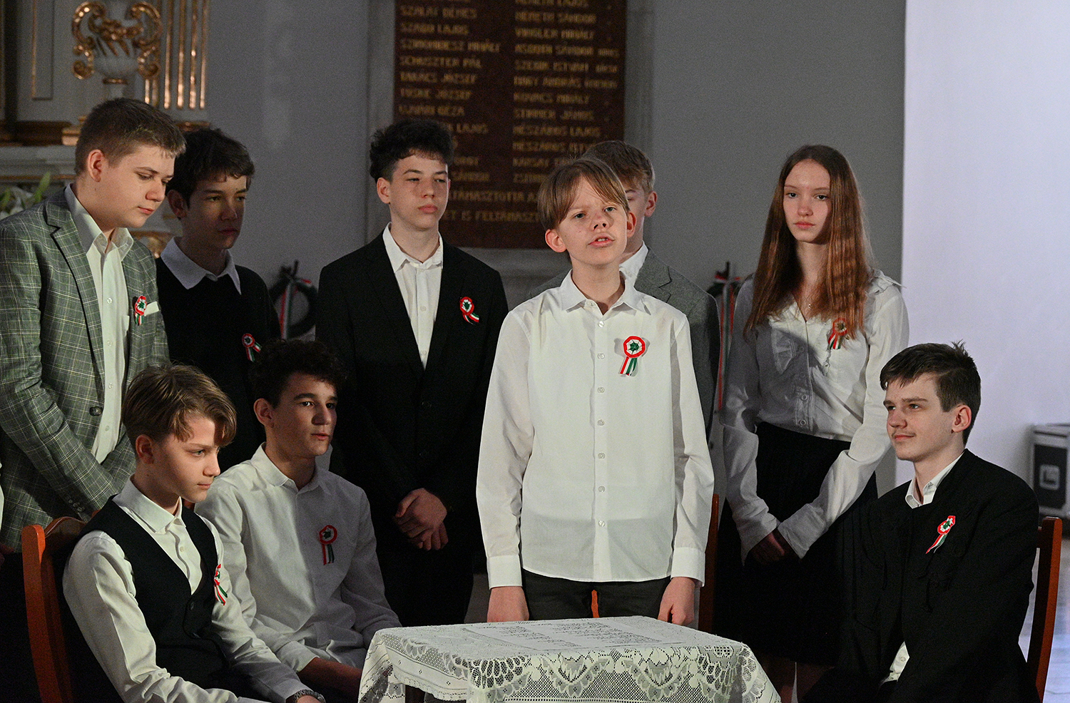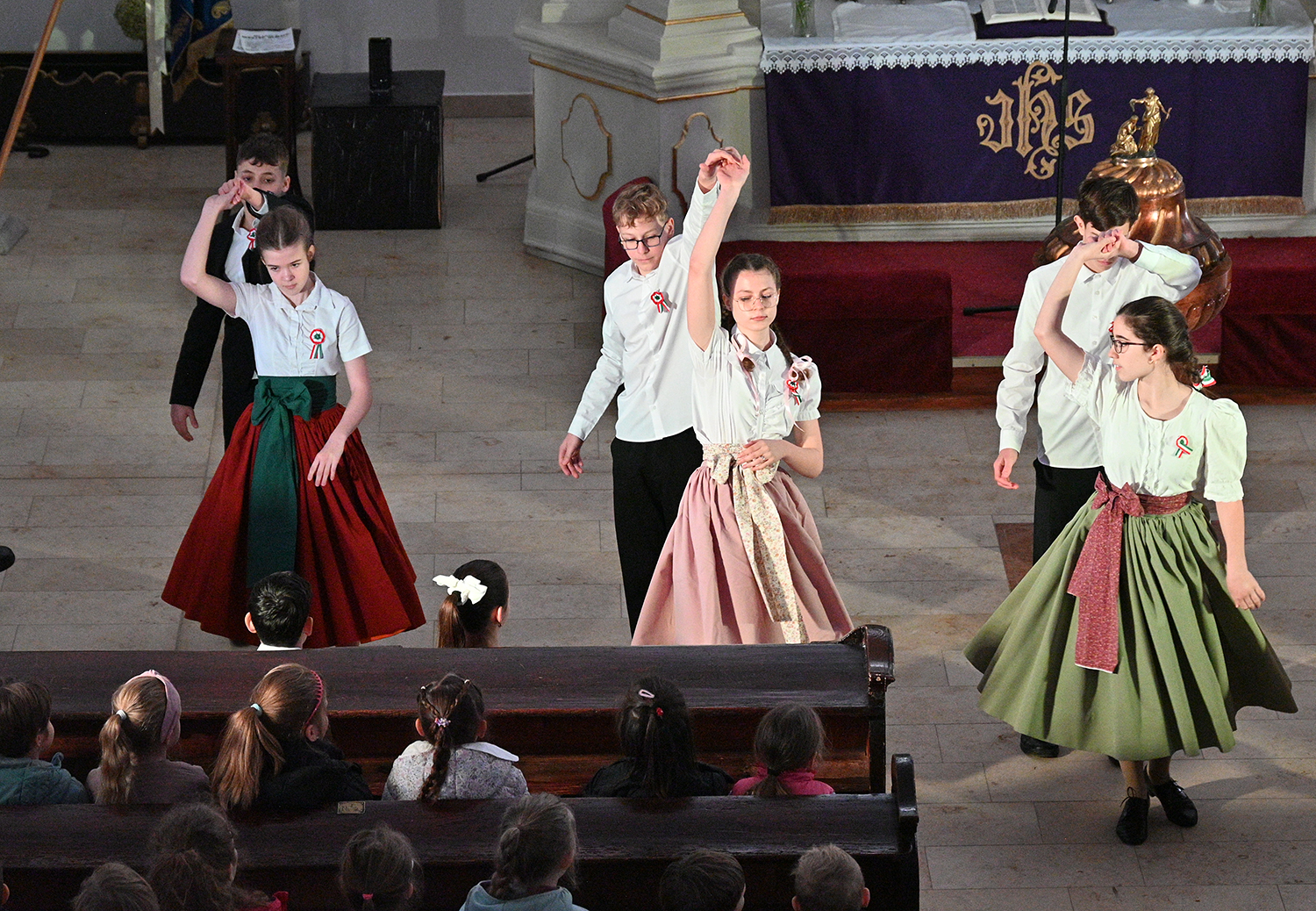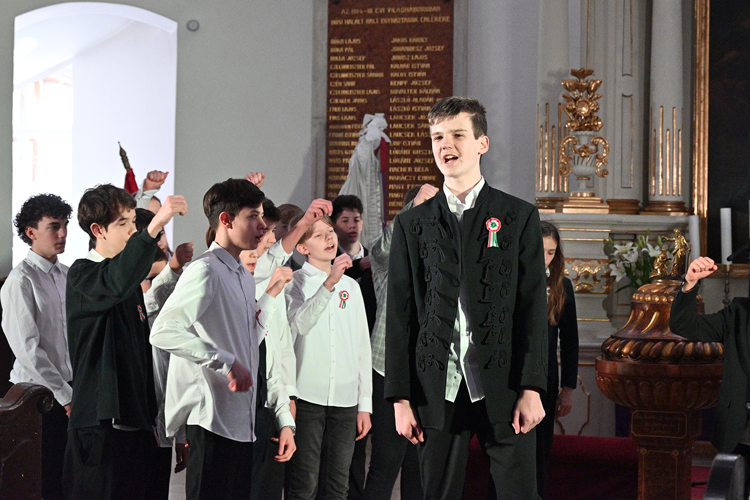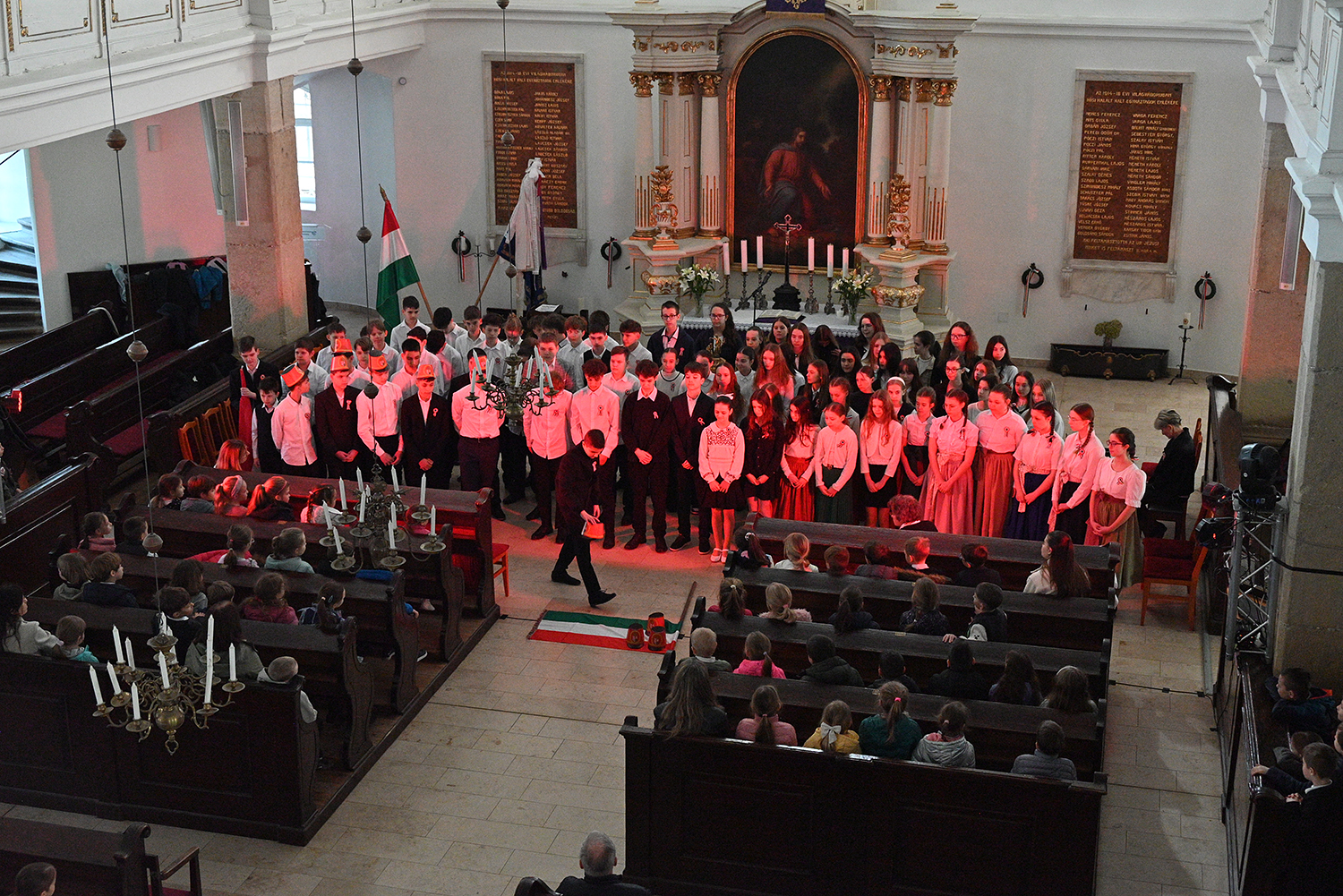 Hagyományosan a 7. évfolyam közös műsorával elevenedtek meg az 1848. március 15-i események. Mai keretbe ágyazva, de méltó módon tárultak elénk az akkori történések versek, dalok és jelenetek formájában.