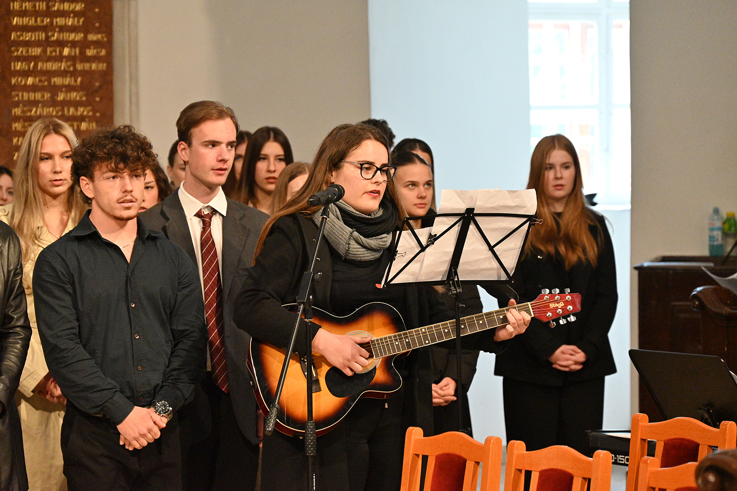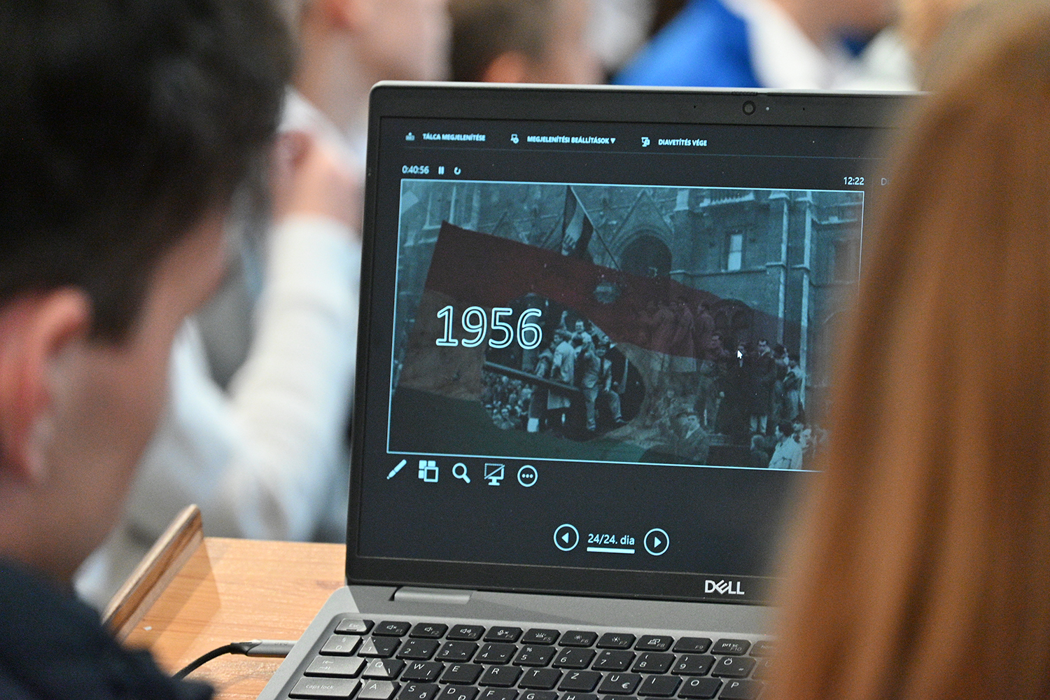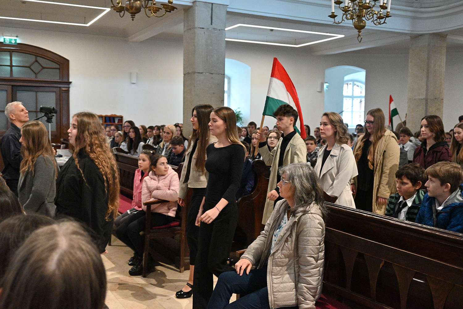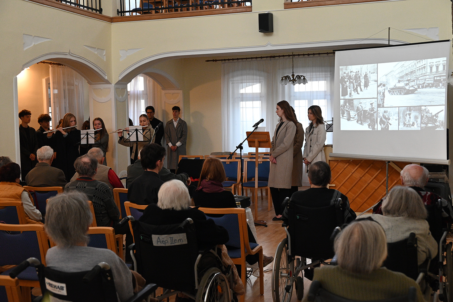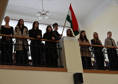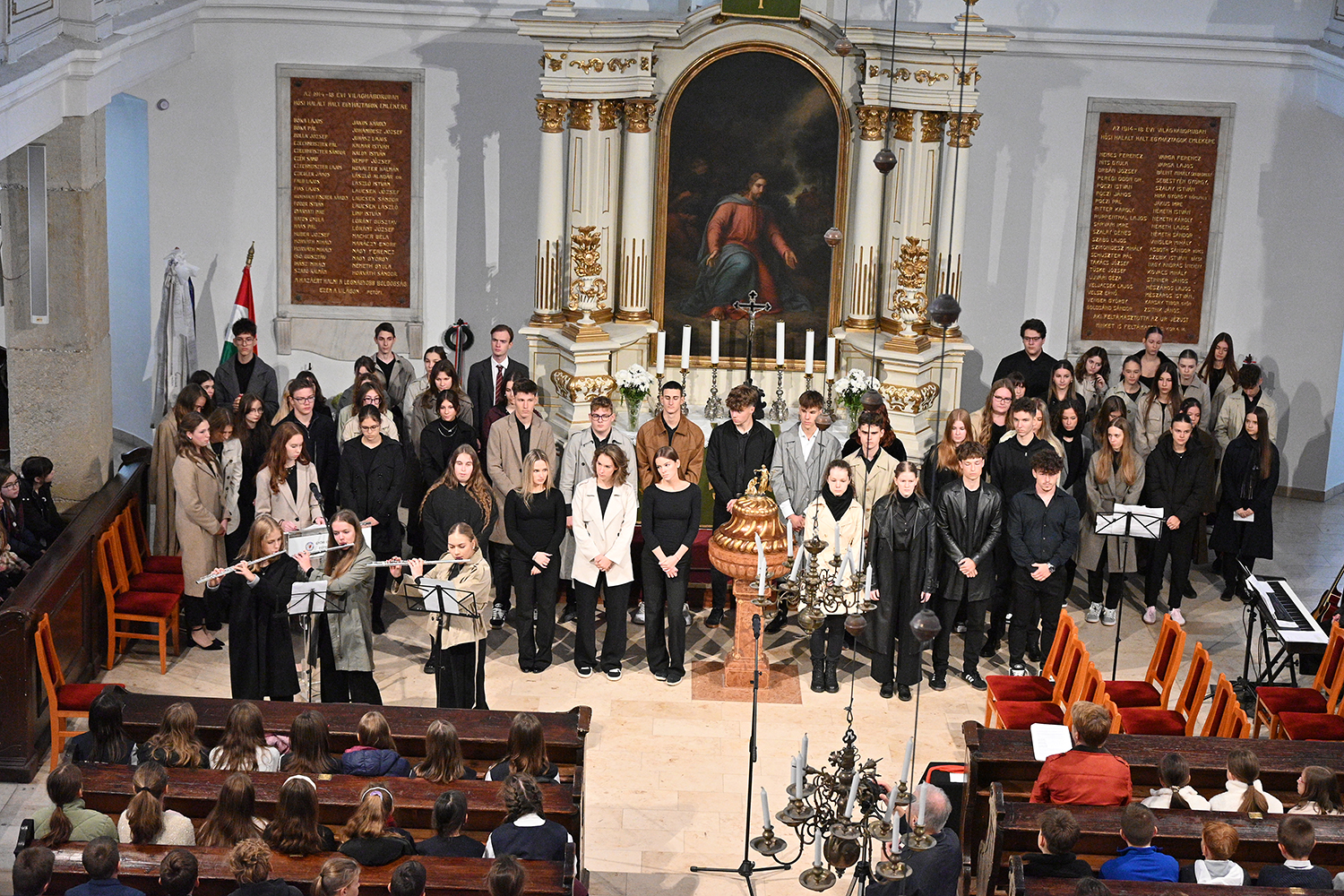 Okt. 22-én az 5. órában emlékeztünk meg a 11. évfolyam műsorával nemzeti ünnepünkről, az október 23-i eseményekről. A diákok által életre keltett jelenetek, emlékképek, dalok és versek méltó módon mutatták be az akkori eseményeket, történéseket. Nemcsak diákjaink láthatták ezt a színvonalas megemlékezést, hanem a szeretetotthon lakói is, hiszen nekik is előadták a műsort. Az otthon egyik lakója a műsor végén szót kérve hálásan, meghatódva meg is köszönte és elmondta, mennyire megérintette a megemlékezés, hiszen ő maga is tanúja volt az óvári eseményeknek.