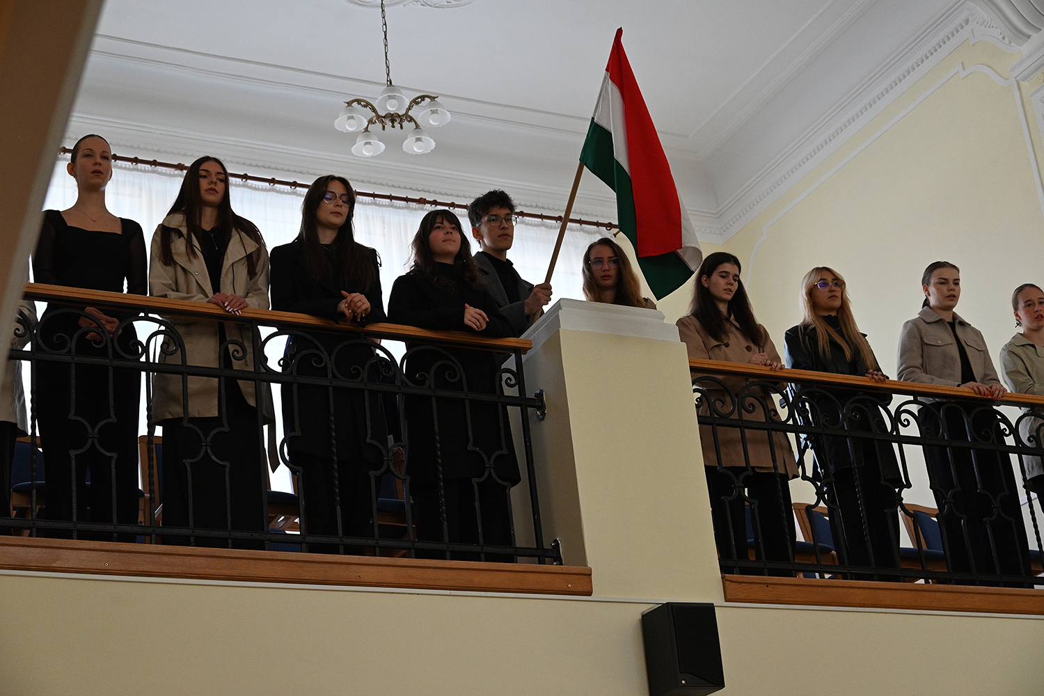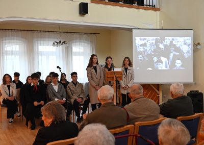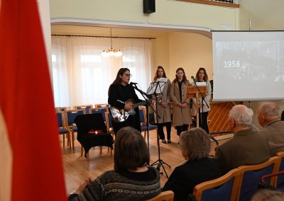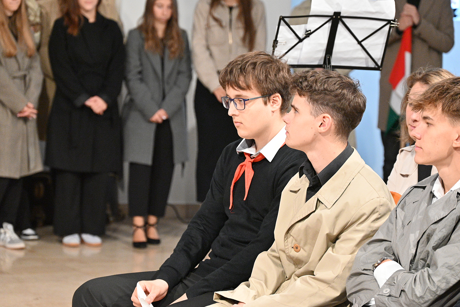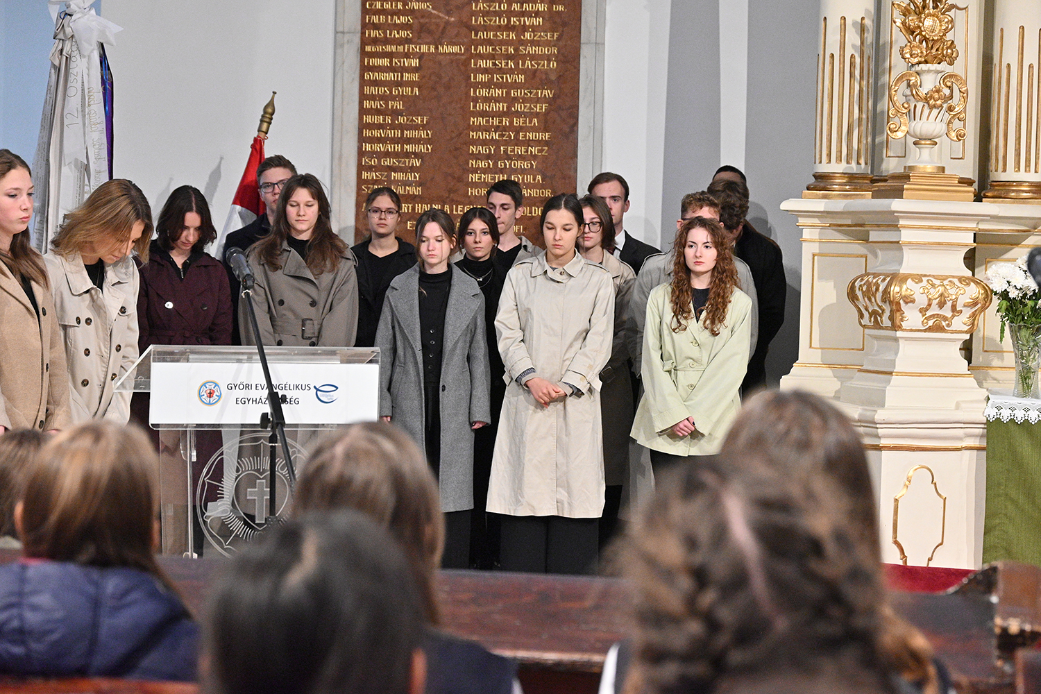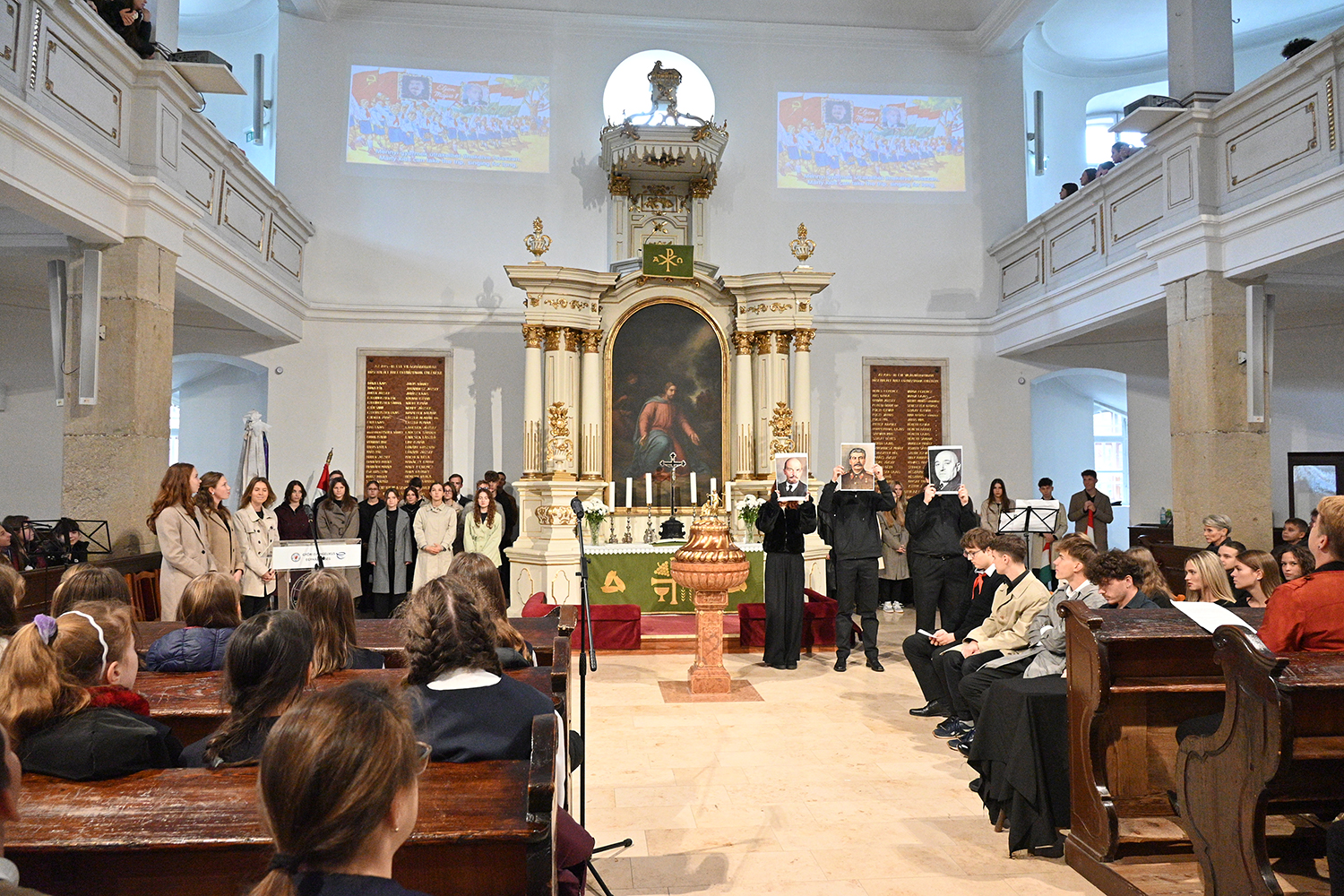 Okt. 22-én az 5. órában emlékeztünk meg a 11. évfolyam műsorával nemzeti ünnepünkről, az október 23-i eseményekről. A diákok által életre keltett jelenetek, emlékképek, dalok és versek méltó módon mutatták be az akkori eseményeket, történéseket. Nemcsak diákjaink láthatták ezt a színvonalas megemlékezést, hanem a szeretetotthon lakói is, hiszen nekik is előadták a műsort. Az otthon egyik lakója a műsor végén szót kérve hálásan, meghatódva meg is köszönte és elmondta, mennyire megérintette a megemlékezés, hiszen ő maga is tanúja volt az óvári eseményeknek.