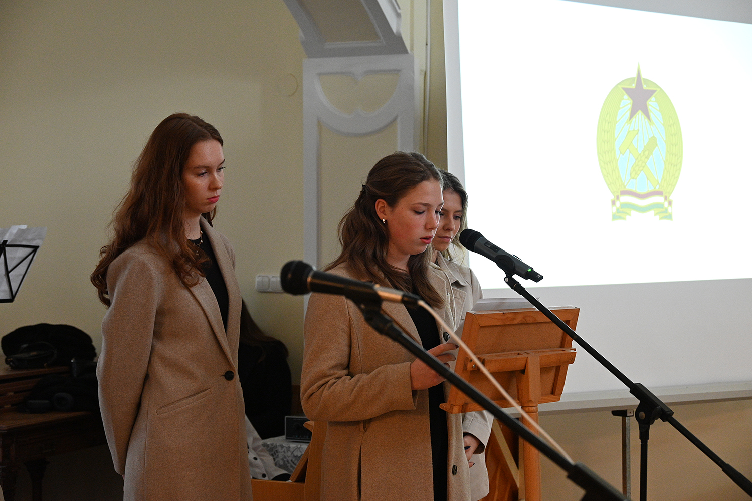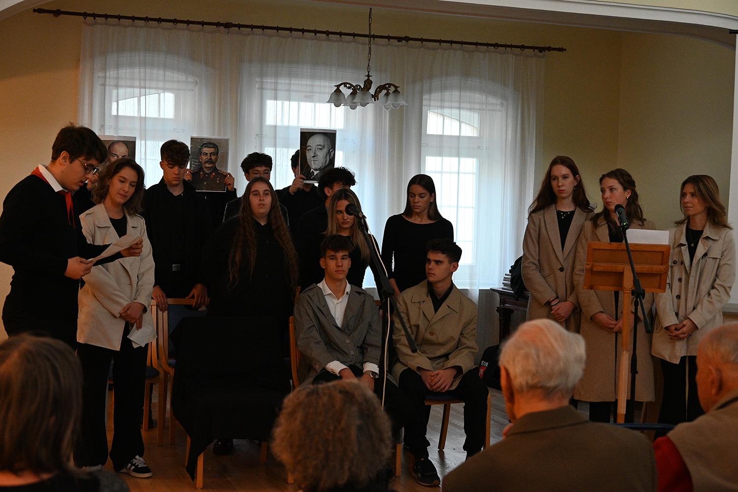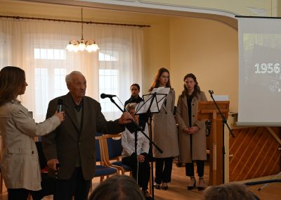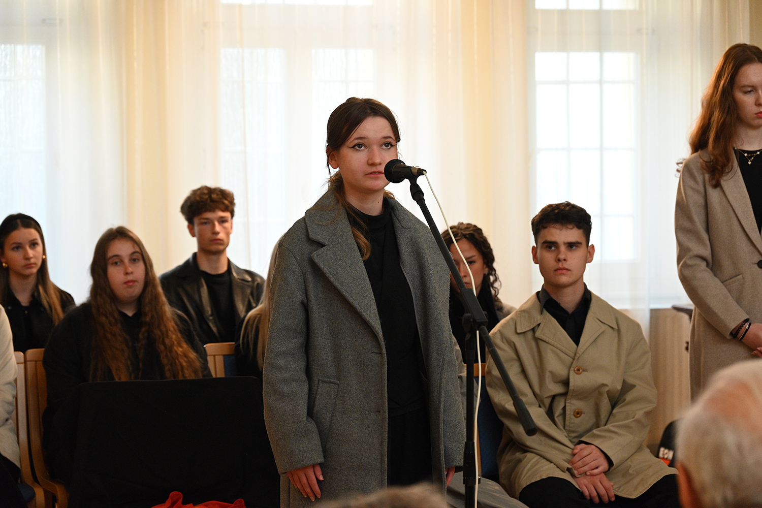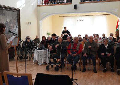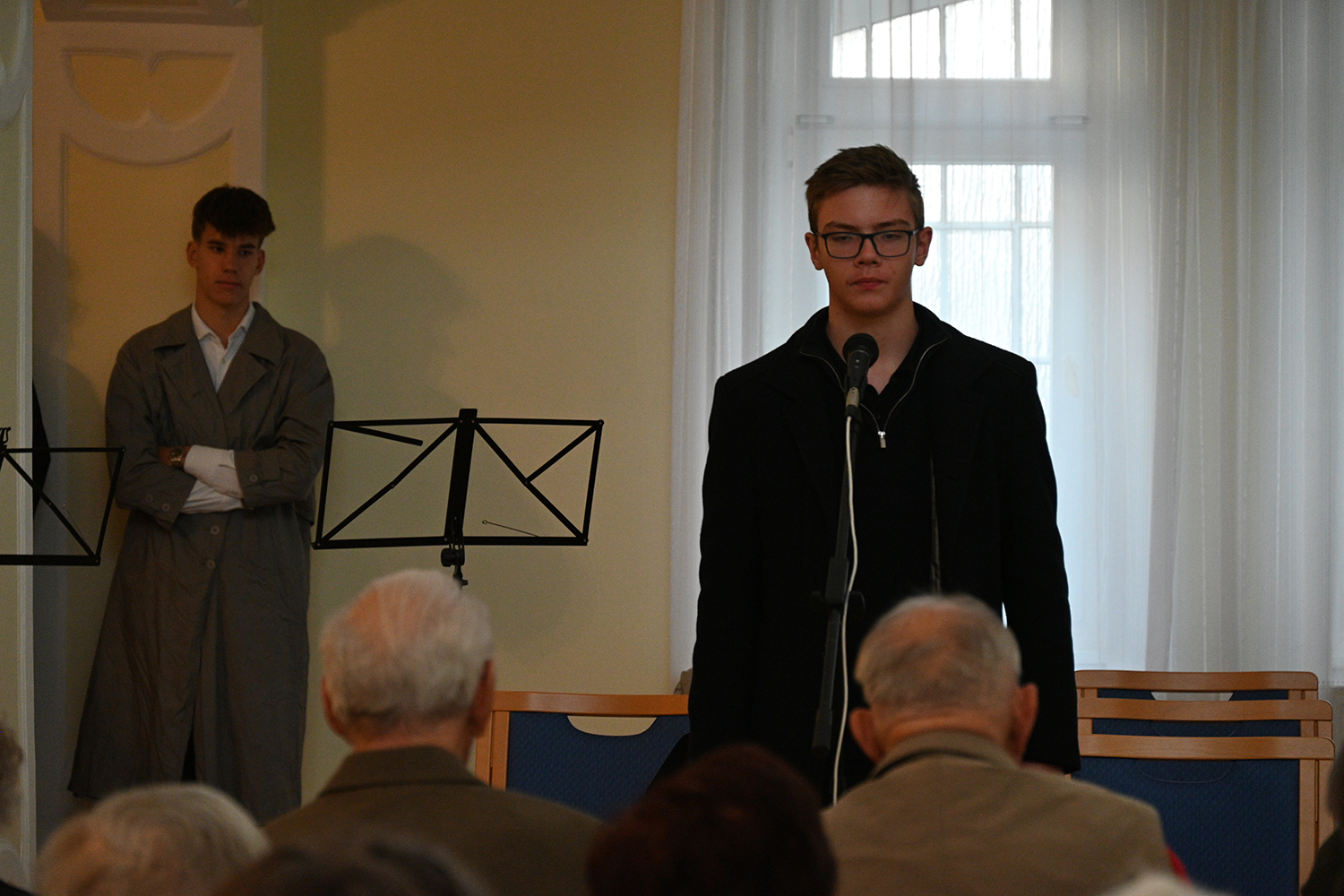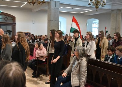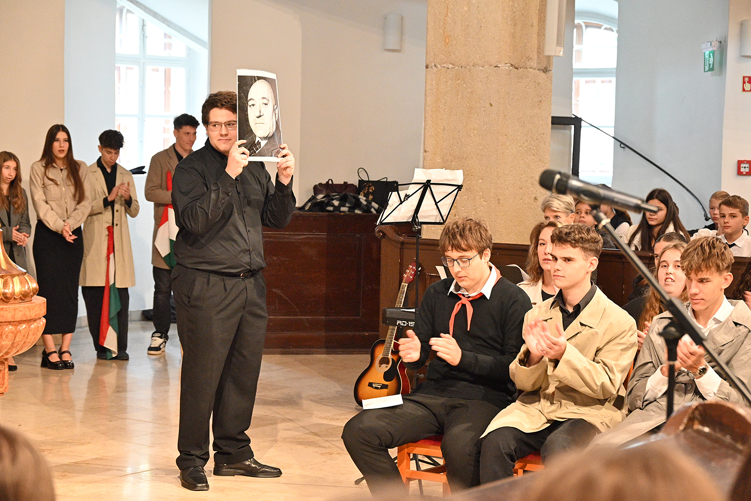 Okt. 22-én az 5. órában emlékeztünk meg a 11. évfolyam műsorával nemzeti ünnepünkről, az október 23-i eseményekről. A diákok által életre keltett jelenetek, emlékképek, dalok és versek méltó módon mutatták be az akkori eseményeket, történéseket. Nemcsak diákjaink láthatták ezt a színvonalas megemlékezést, hanem a szeretetotthon lakói is, hiszen nekik is előadták a műsort. Az otthon egyik lakója a műsor végén szót kérve hálásan, meghatódva meg is köszönte és elmondta, mennyire megérintette a megemlékezés, hiszen ő maga is tanúja volt az óvári eseményeknek.