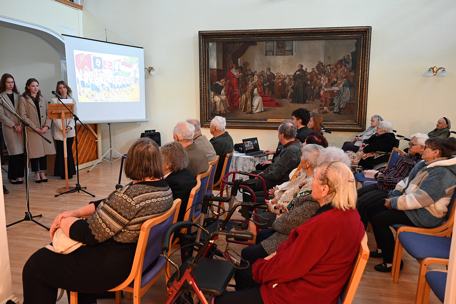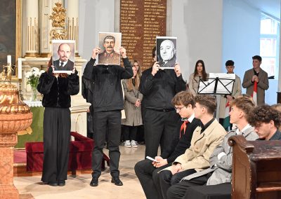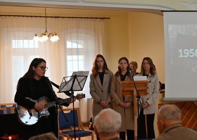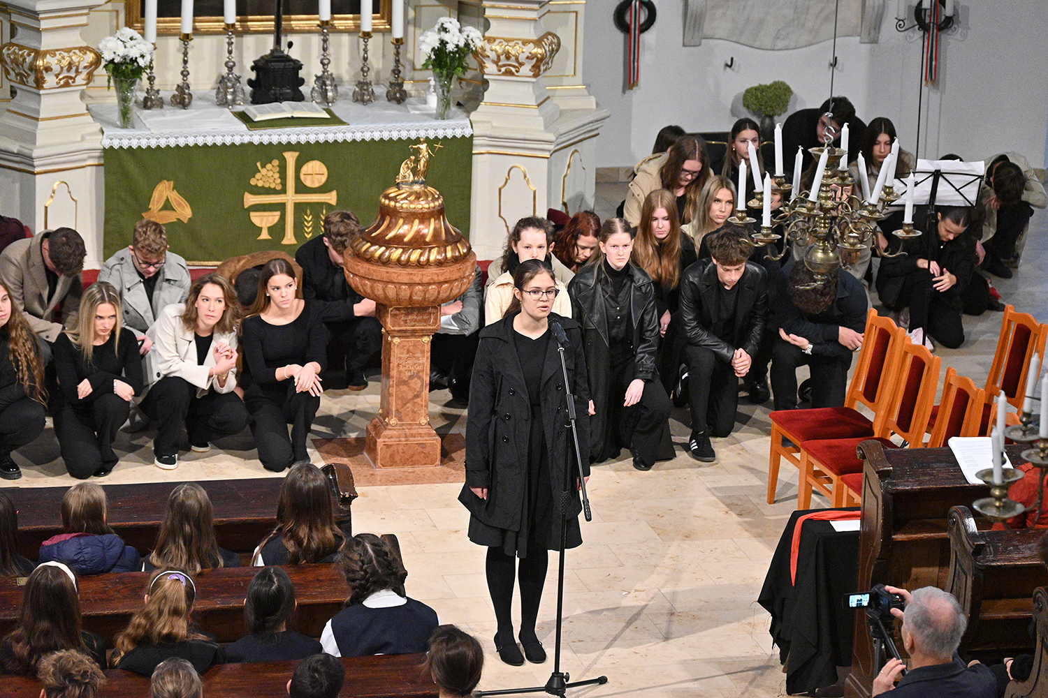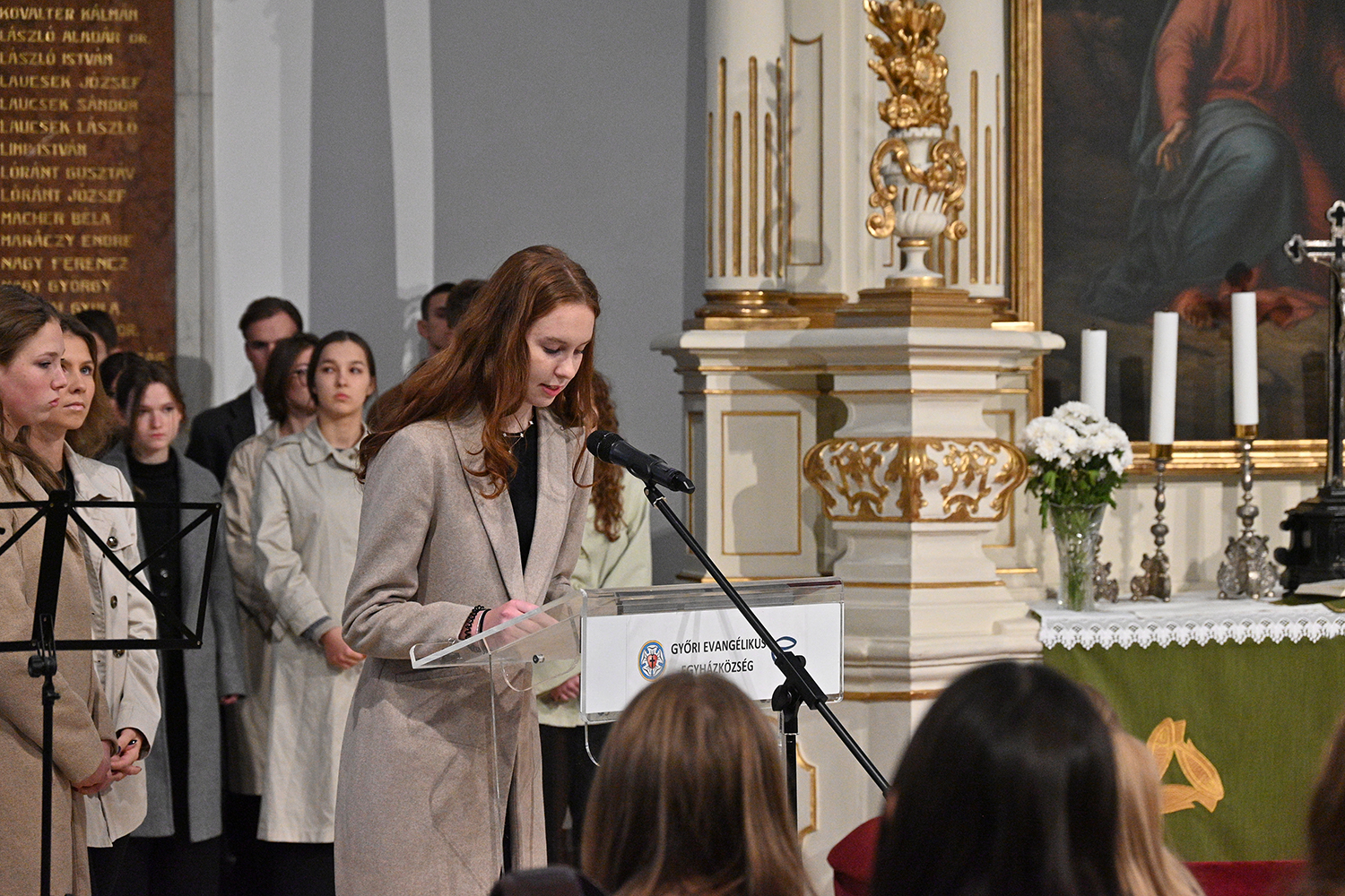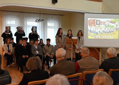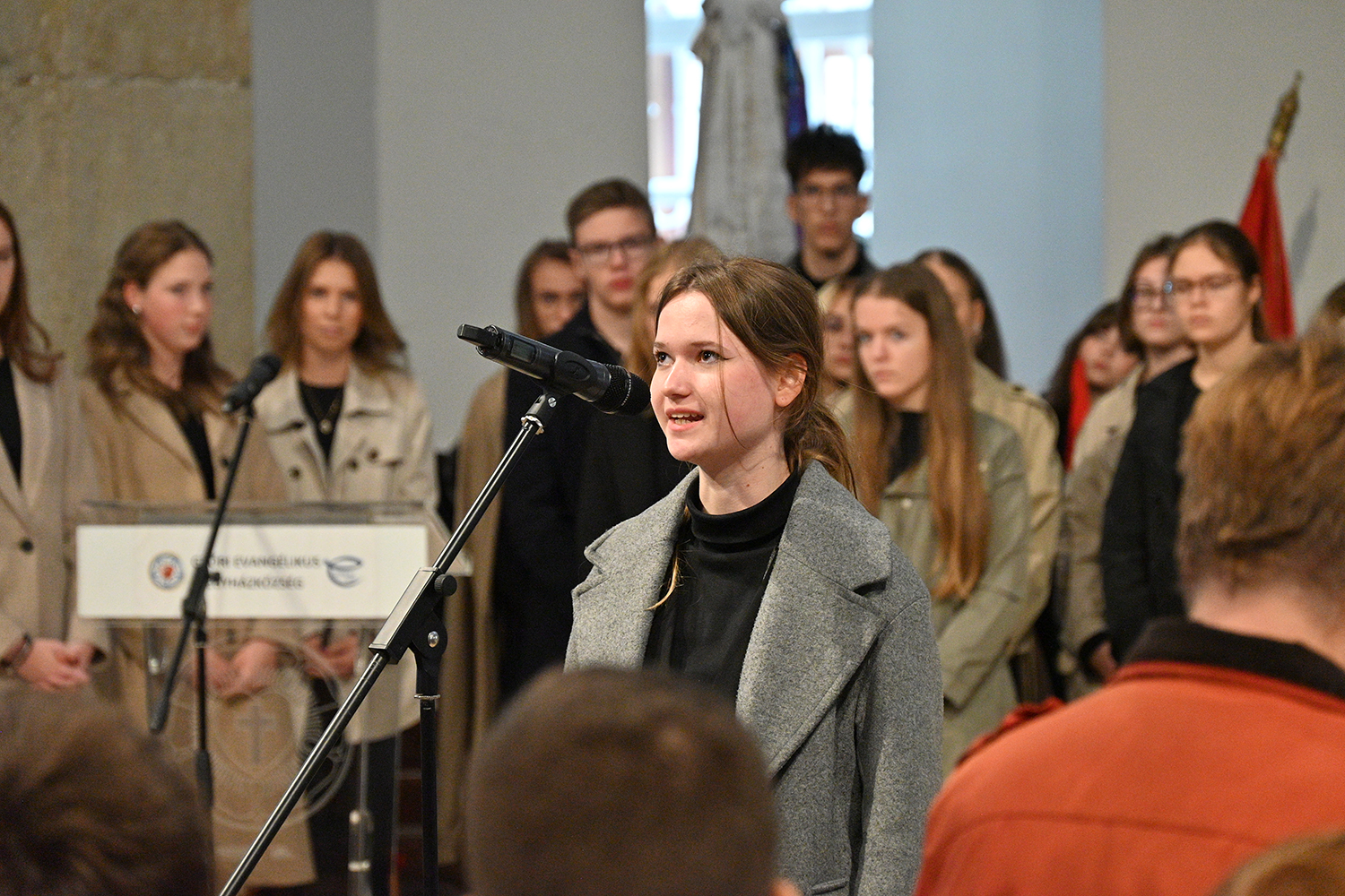 Okt. 22-én az 5. órában emlékeztünk meg a 11. évfolyam műsorával nemzeti ünnepünkről, az október 23-i eseményekről. A diákok által életre keltett jelenetek, emlékképek, dalok és versek méltó módon mutatták be az akkori eseményeket, történéseket. Nemcsak diákjaink láthatták ezt a színvonalas megemlékezést, hanem a szeretetotthon lakói is, hiszen nekik is előadták a műsort. Az otthon egyik lakója a műsor végén szót kérve hálásan, meghatódva meg is köszönte és elmondta, mennyire megérintette a megemlékezés, hiszen ő maga is tanúja volt az óvári eseményeknek.