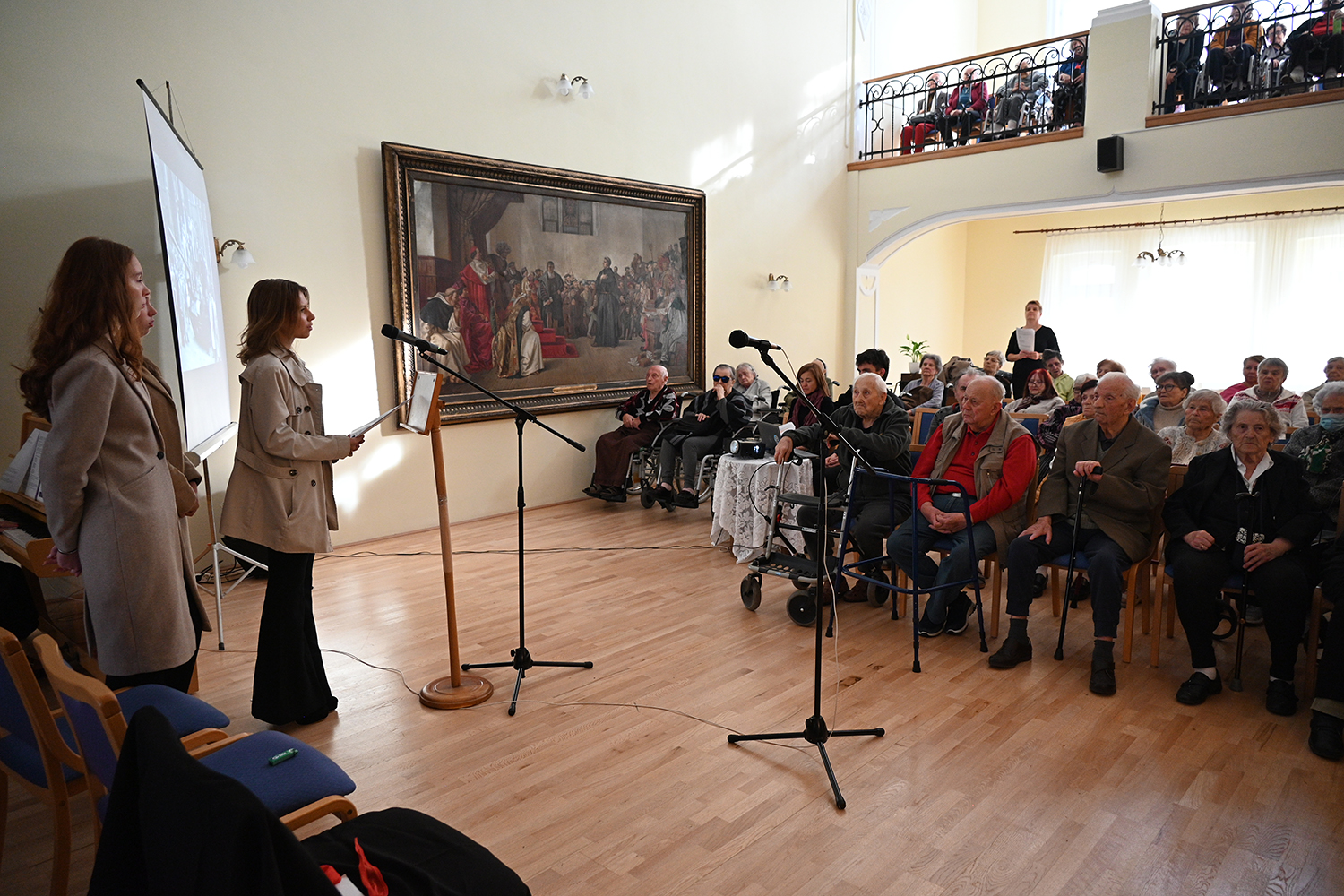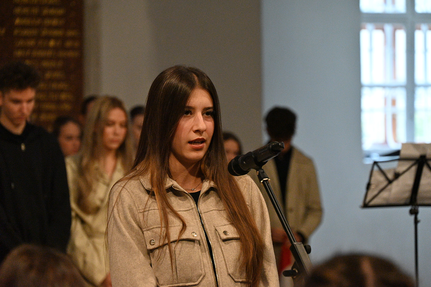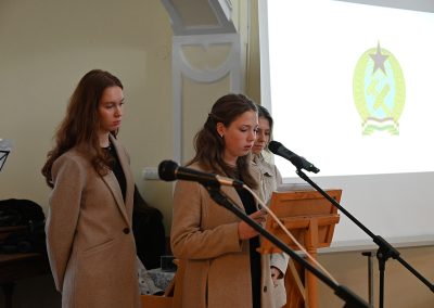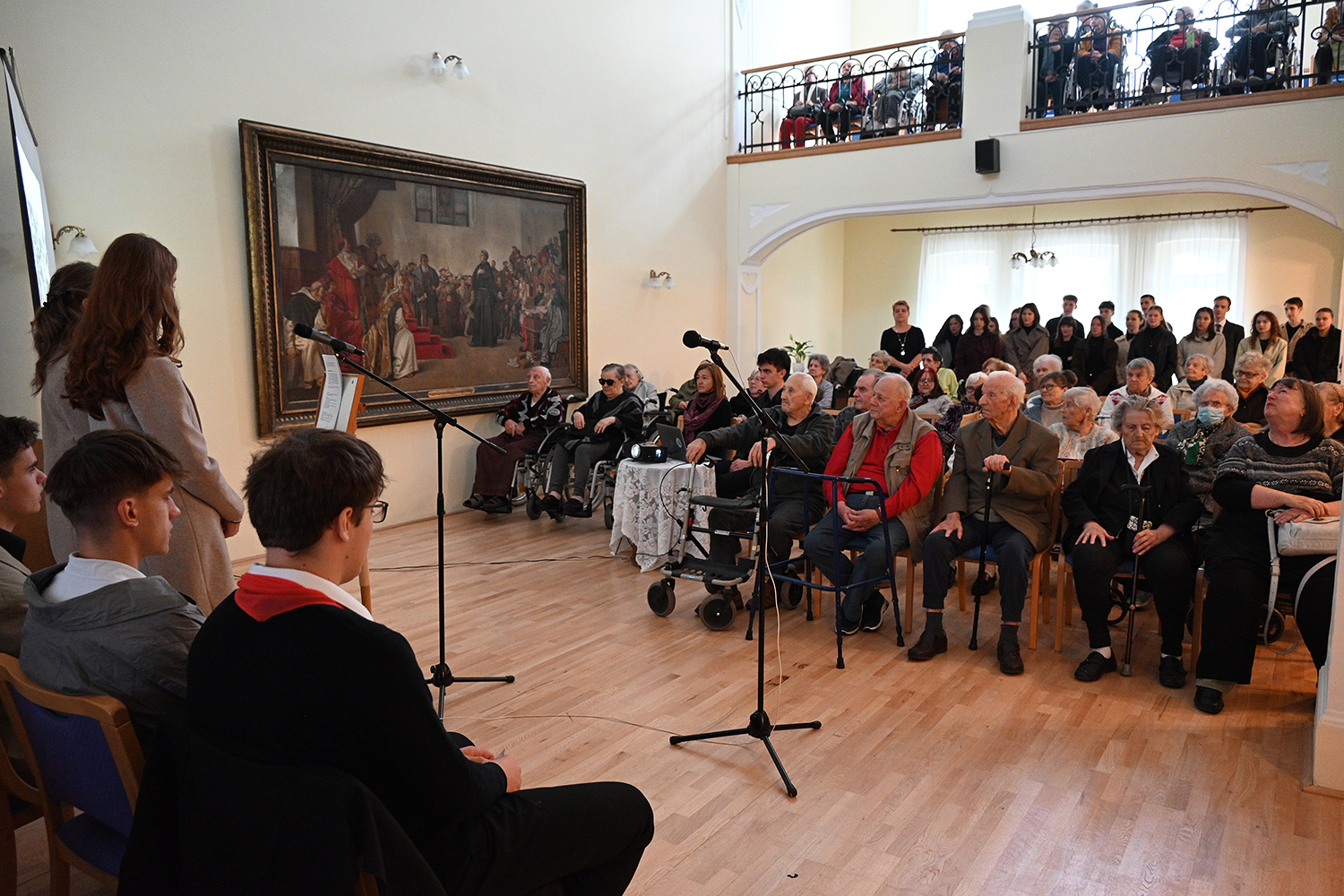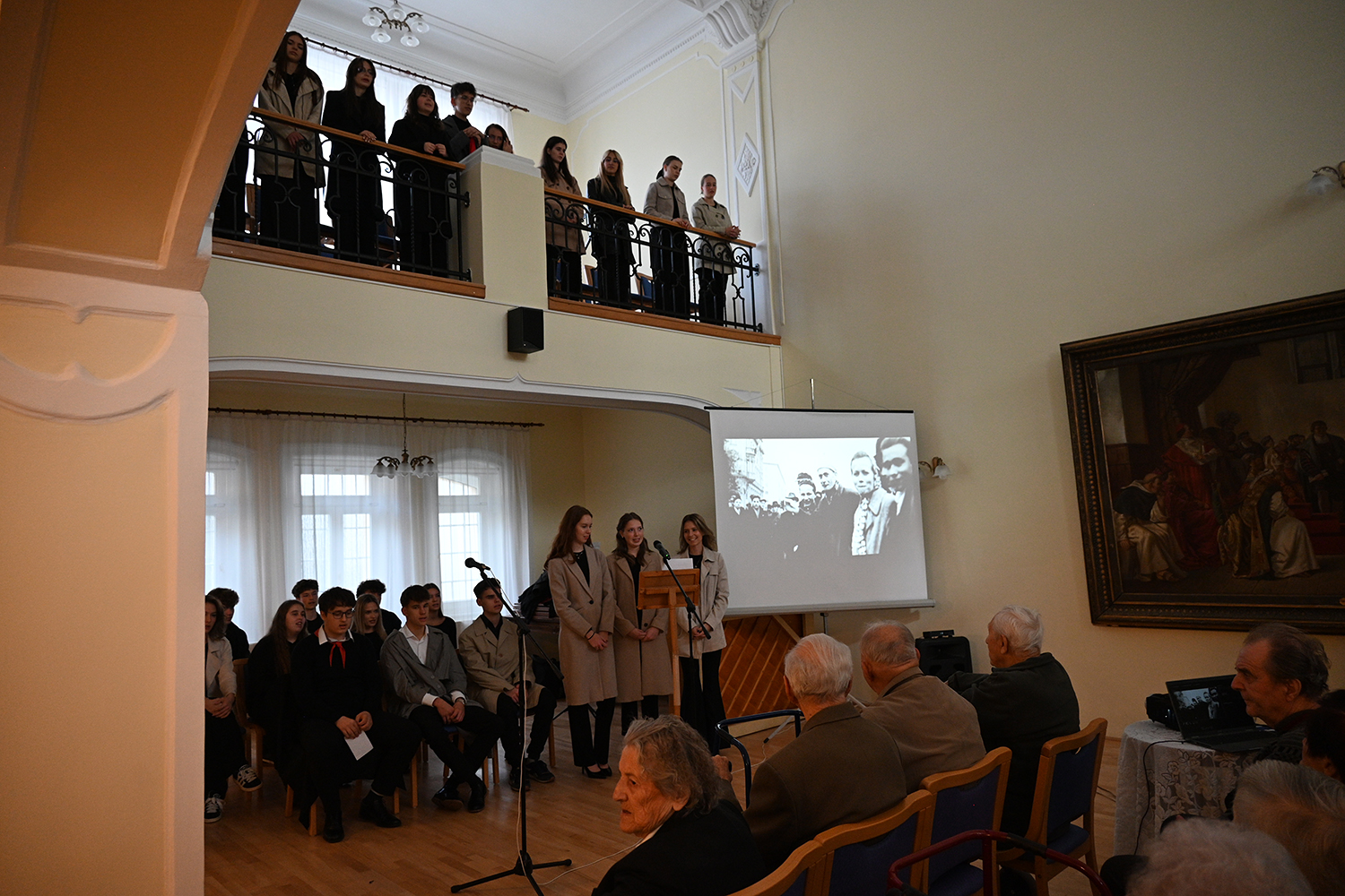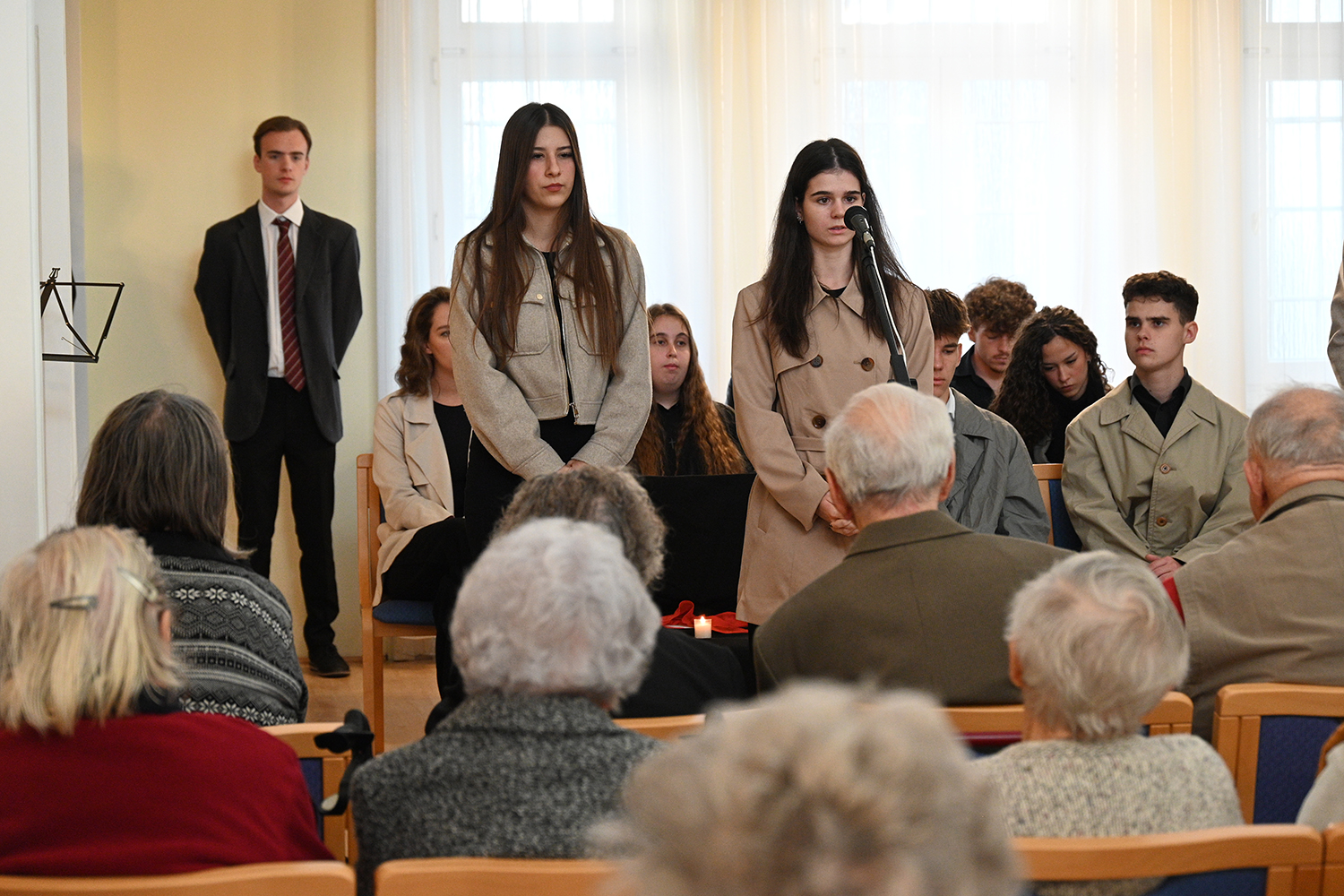 Okt. 22-én az 5. órában emlékeztünk meg a 11. évfolyam műsorával nemzeti ünnepünkről, az október 23-i eseményekről. A diákok által életre keltett jelenetek, emlékképek, dalok és versek méltó módon mutatták be az akkori eseményeket, történéseket. Nemcsak diákjaink láthatták ezt a színvonalas megemlékezést, hanem a szeretetotthon lakói is, hiszen nekik is előadták a műsort. Az otthon egyik lakója a műsor végén szót kérve hálásan, meghatódva meg is köszönte és elmondta, mennyire megérintette a megemlékezés, hiszen ő maga is tanúja volt az óvári eseményeknek.