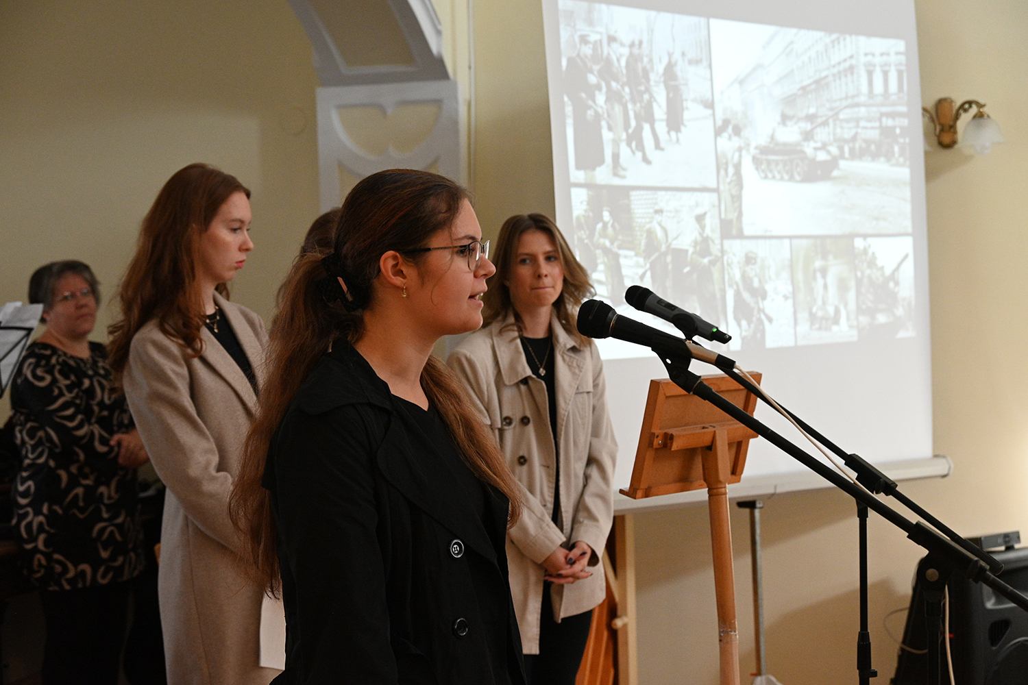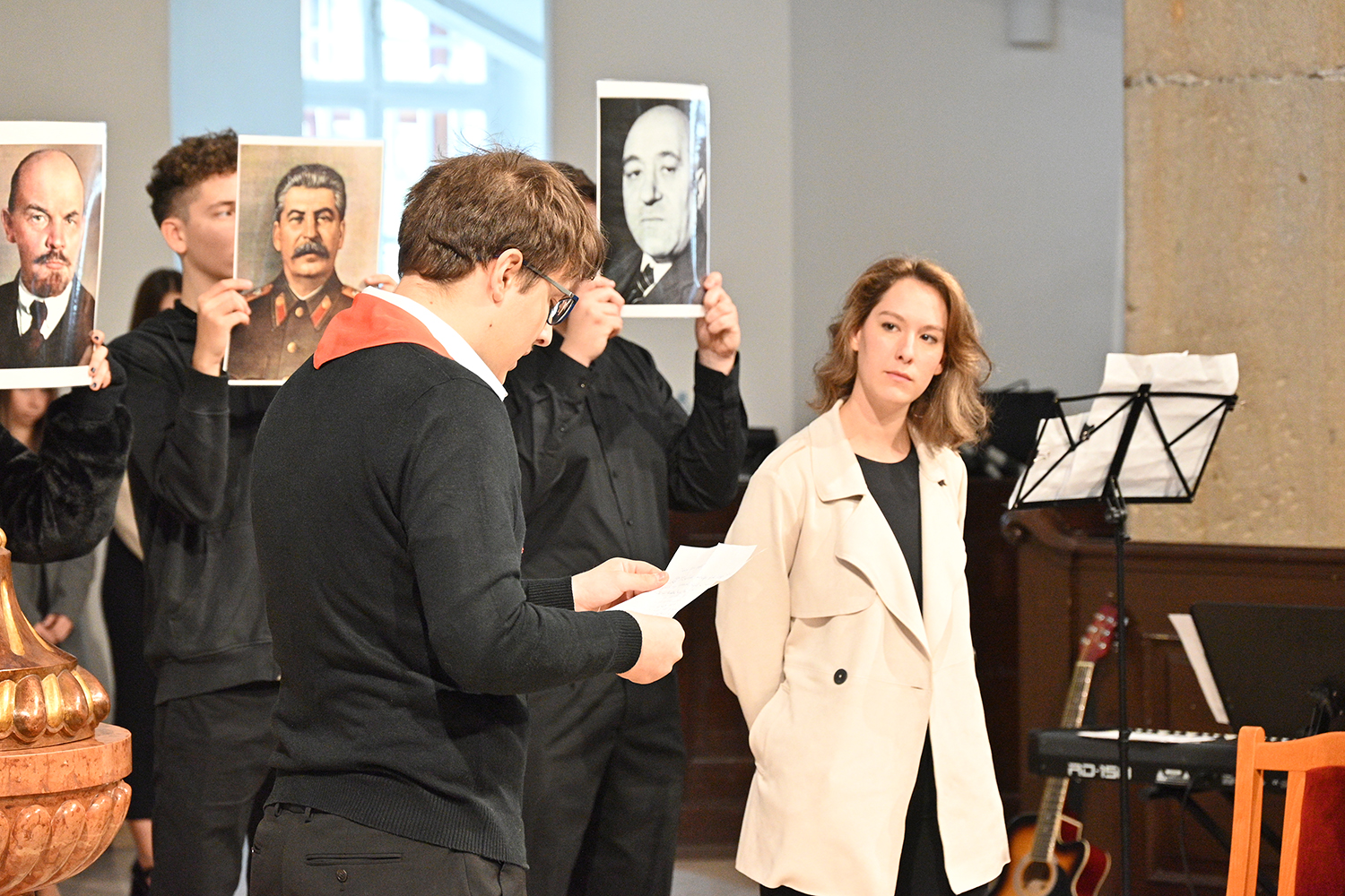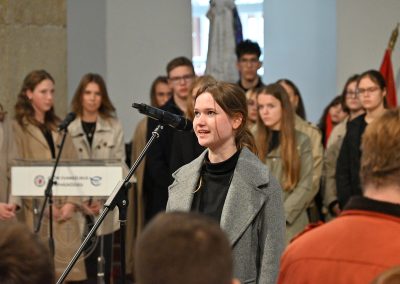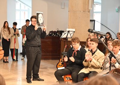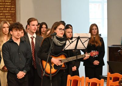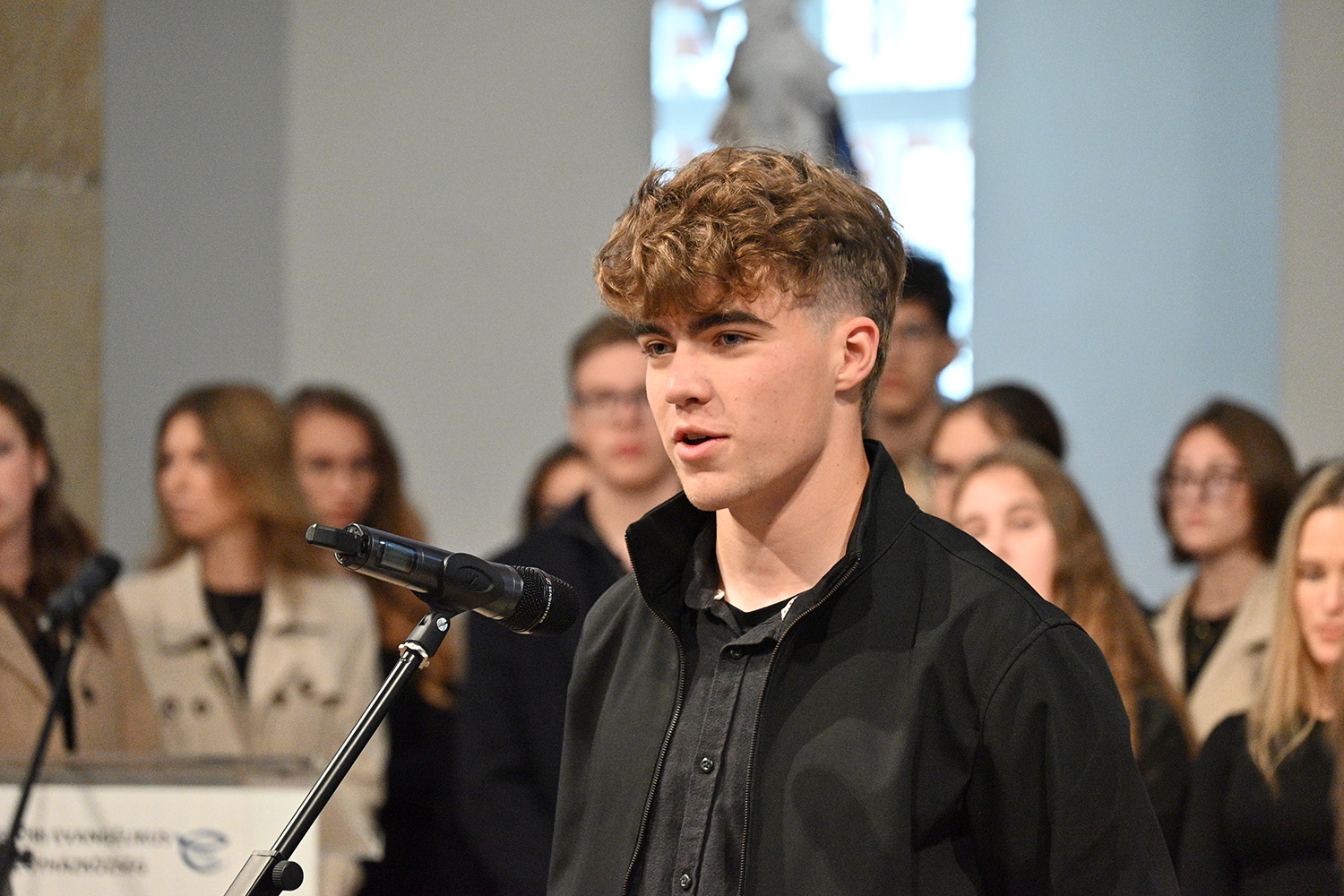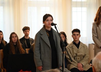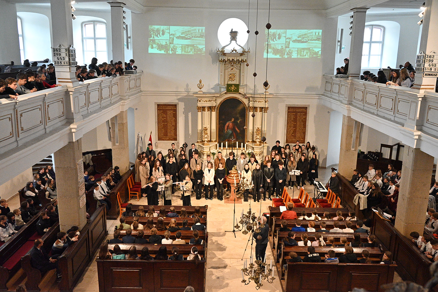 Okt. 22-én az 5. órában emlékeztünk meg a 11. évfolyam műsorával nemzeti ünnepünkről, az október 23-i eseményekről. A diákok által életre keltett jelenetek, emlékképek, dalok és versek méltó módon mutatták be az akkori eseményeket, történéseket. Nemcsak diákjaink láthatták ezt a színvonalas megemlékezést, hanem a szeretetotthon lakói is, hiszen nekik is előadták a műsort. Az otthon egyik lakója a műsor végén szót kérve hálásan, meghatódva meg is köszönte és elmondta, mennyire megérintette a megemlékezés, hiszen ő maga is tanúja volt az óvári eseményeknek.
