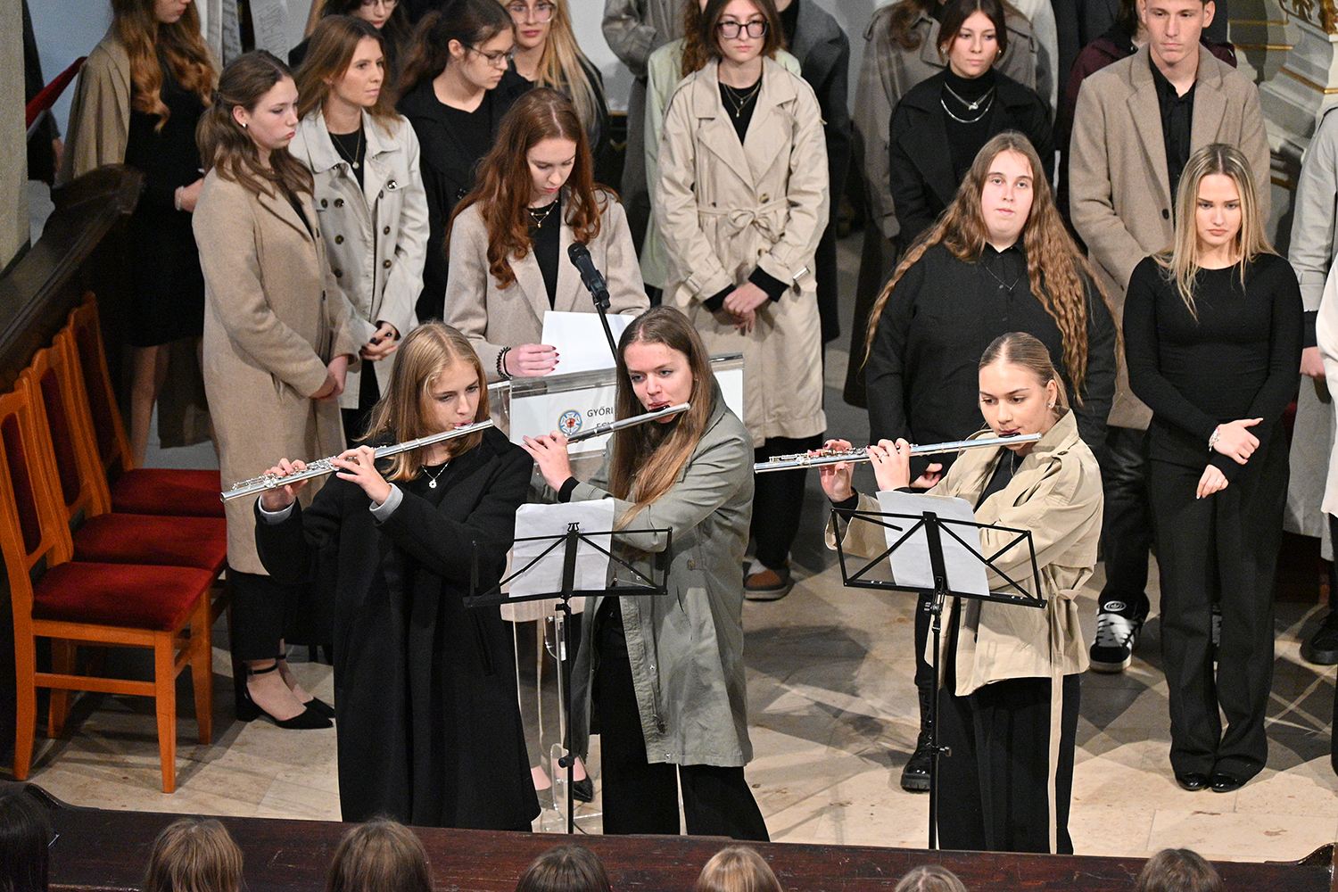 Iskolánk tanulói (Péterfy Vers Társaság) részt vehettek egy városi kezdeményezésben, amelyben egy verset a város több iskolájával közösen mondtak el. Ez az okt. 23-i városi megemlékezésen került bemutatásra. „Az ünnepség megható nyitánya volt Illyés Gyula Egy mondat a zsarnokságról című versének videós feldolgozása, amelyet győri diákok szavaltak el közösen. A hidegrázós erejű versvideó emlékeztetett arra, hogy az elnyomás idején a kimondott szó is lehetett bátor tett.”
